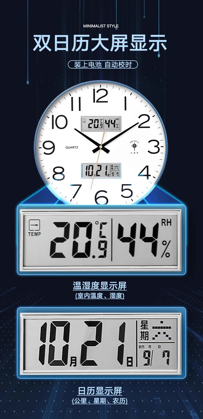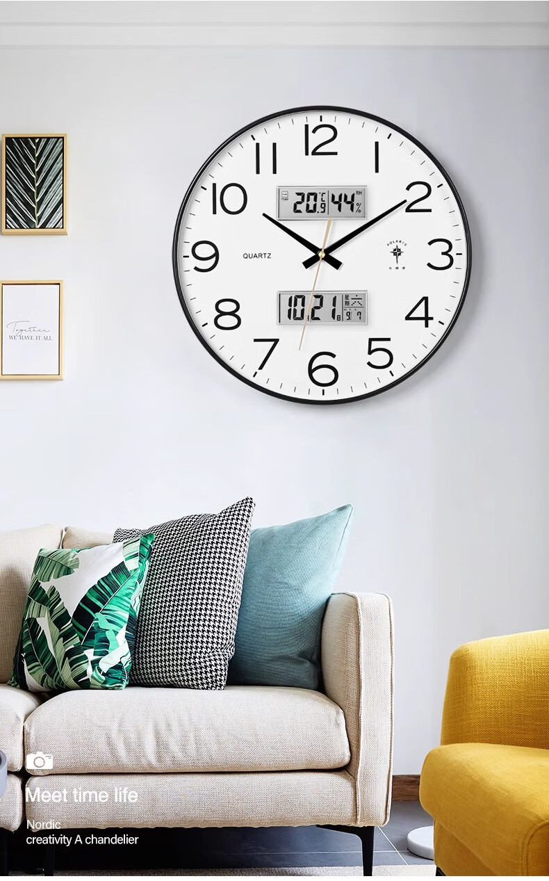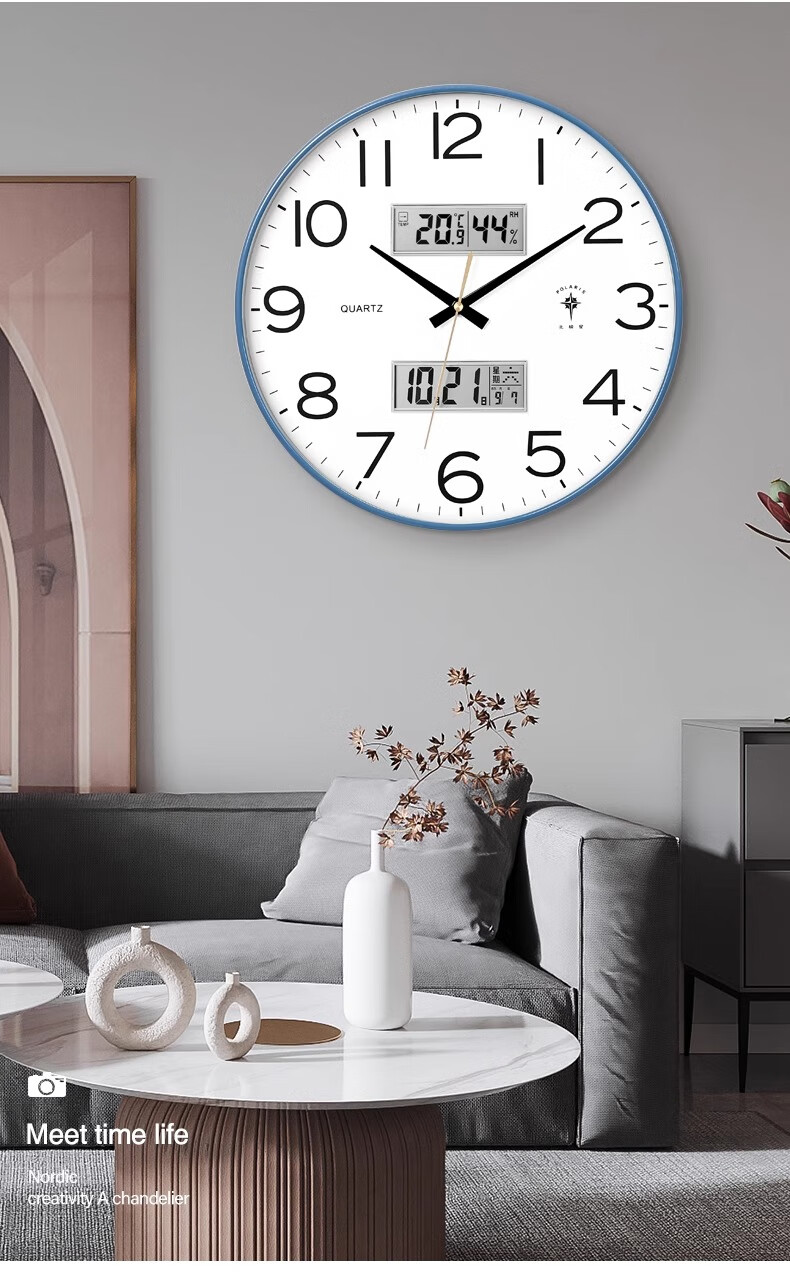 Polaris (POLARIS) clock wall clock automatic time adjustment living room 2025 new quartz clock calendar simple fashion wall clock champagne gold diameter 35 cm