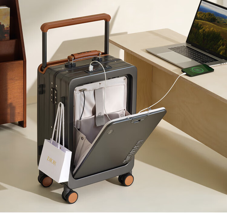 WEOBGR SABER Swiss Army Knife Front Opening Luggage 20 Boarding Business Men New Business Travel Aluminum Frame Travel Wide Trolley Case Women 24 Glacier Gray 2025 New Style - Multifunctional Aluminum Frame 20 Inch Boarding Case - Can Hold 15.6 Inch Computer