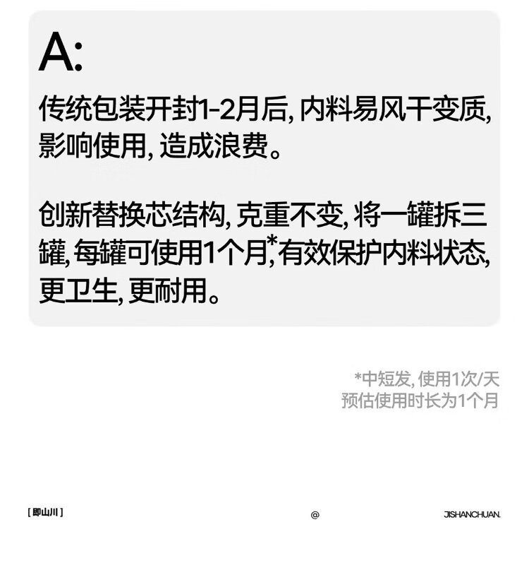 That is, the Shanchuan Hair Clay Replacement Core has no outer can. Only for regular customers. Texture Hair Clay (Standard Version) Replacement Core 25g*2
