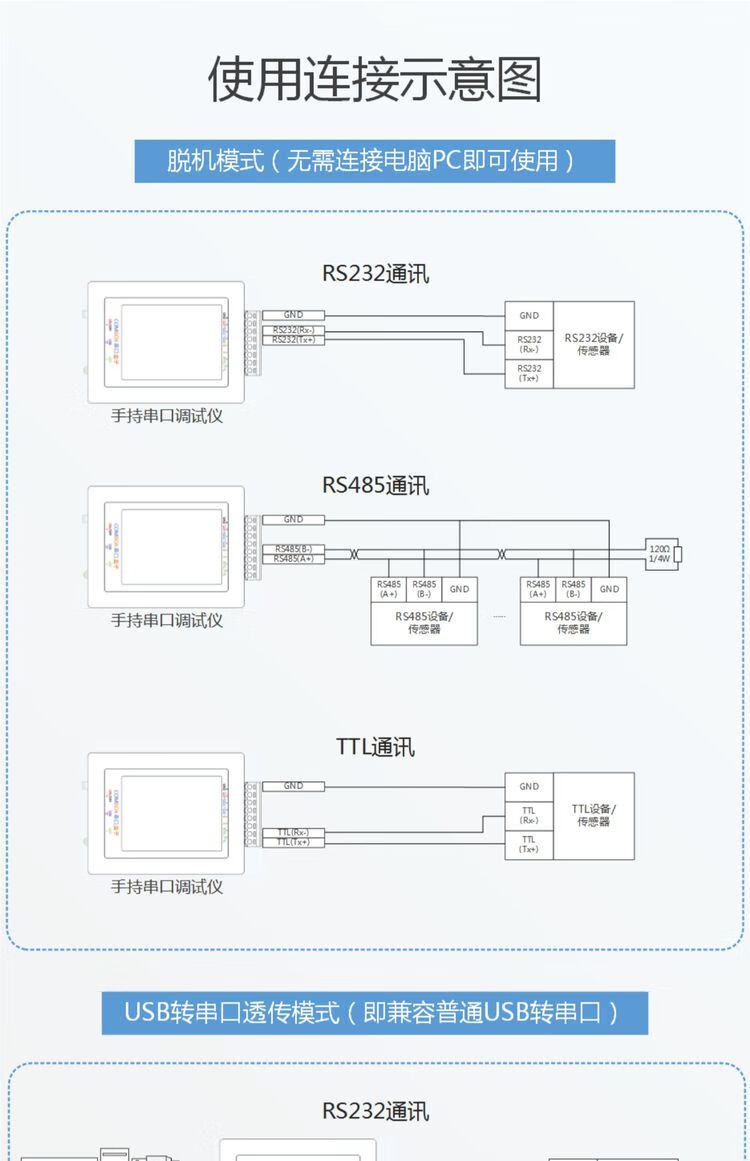 Handheld serial debugging tool compatible with USB to RS232485TTL line communication printing converter Package 5