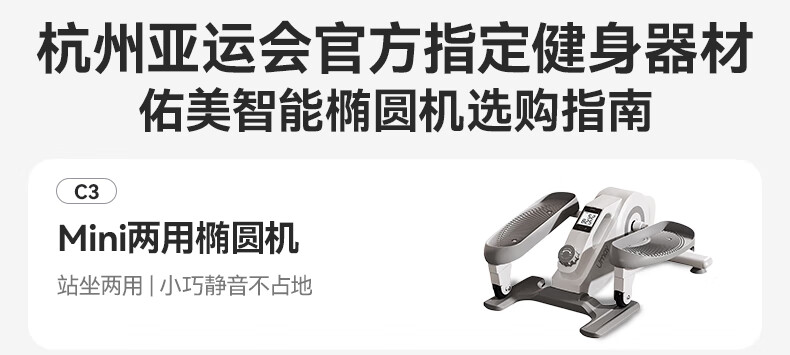 Youmei mini elliptical machine fitness small multi-functional silent walking machine space walking pedal machine MiniC3-01A moonlight white super silent 16-speed magnetic control resistance adjustment