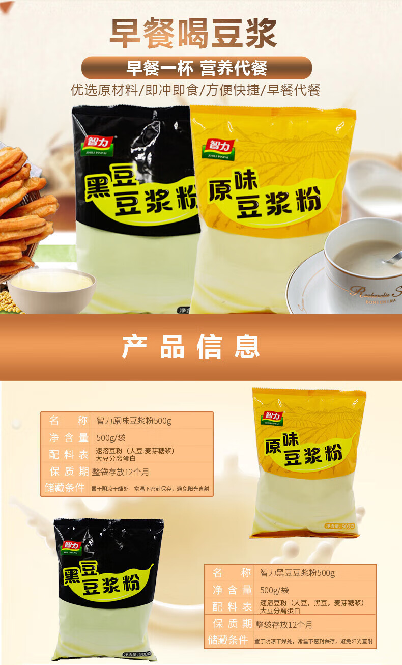 Intelligence Original/Black Bean Soy Milk Powder 500g Bulk Large Packaging Breakfast Nutritious Meal Replacement Drink Instant Commercial 1 Bag Each Original 1 Bag + Black Bean 1 Bag