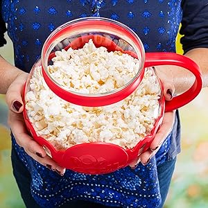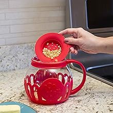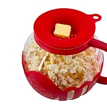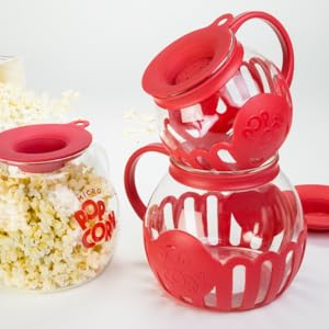 Ecolution Microwave Popcorn Maker 5.6L Borosilicate Glass 3-in-1 Lid Measures Melted Butter No Oil Required Dishwasher Safe Home Healthy Snacks Red Small Size