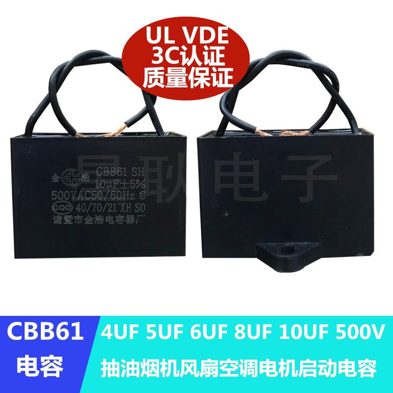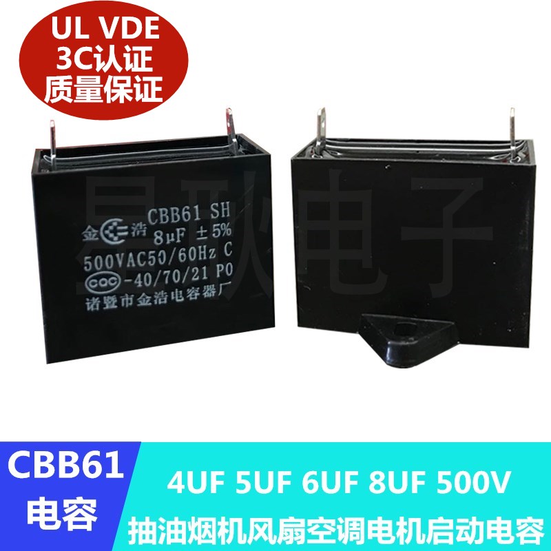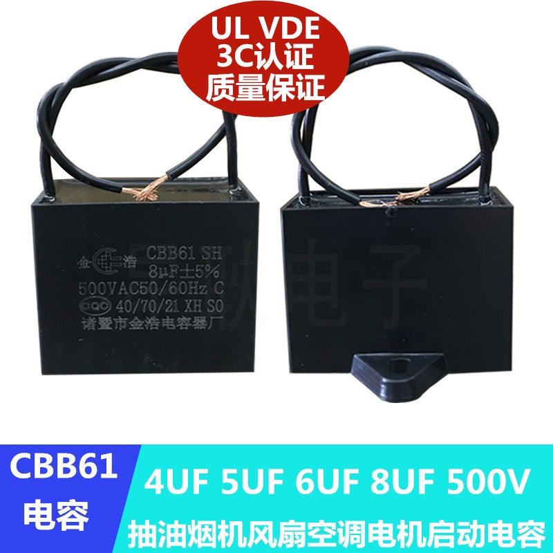 5uf 500V range hood fan motor starting capacitor Zhuji Jinhao Capacitor Factory 4UF 8UF Jinhao 5UF500V with wire (1 piece)