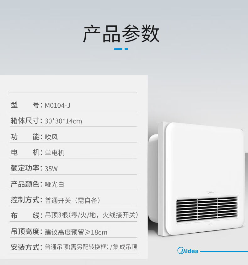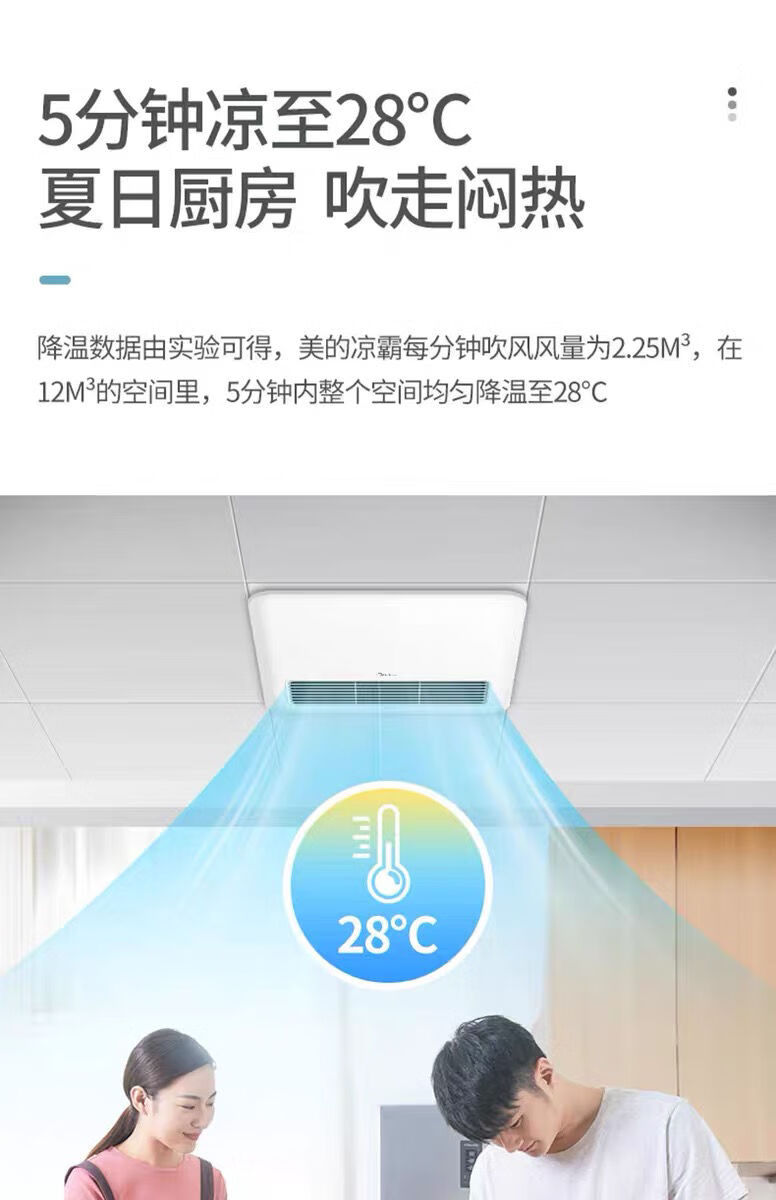 Midea Liangba kitchen embedded integrated ceiling cooling fan 300*300 ultra-thin ceiling-mounted cooling fan bathroom Midea Liangba kitchen embedded integrated ceiling cooling fan