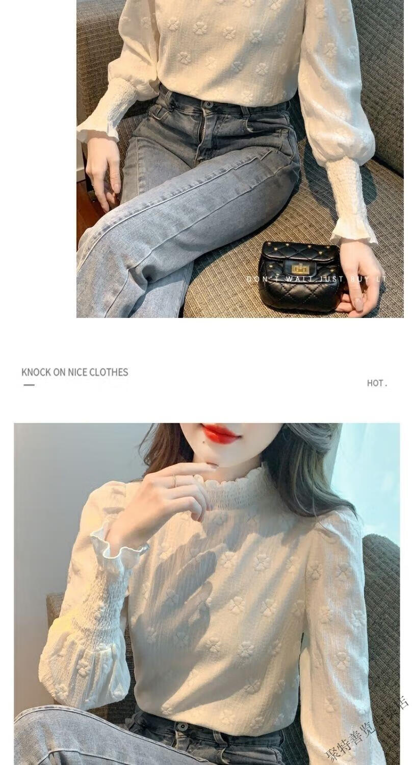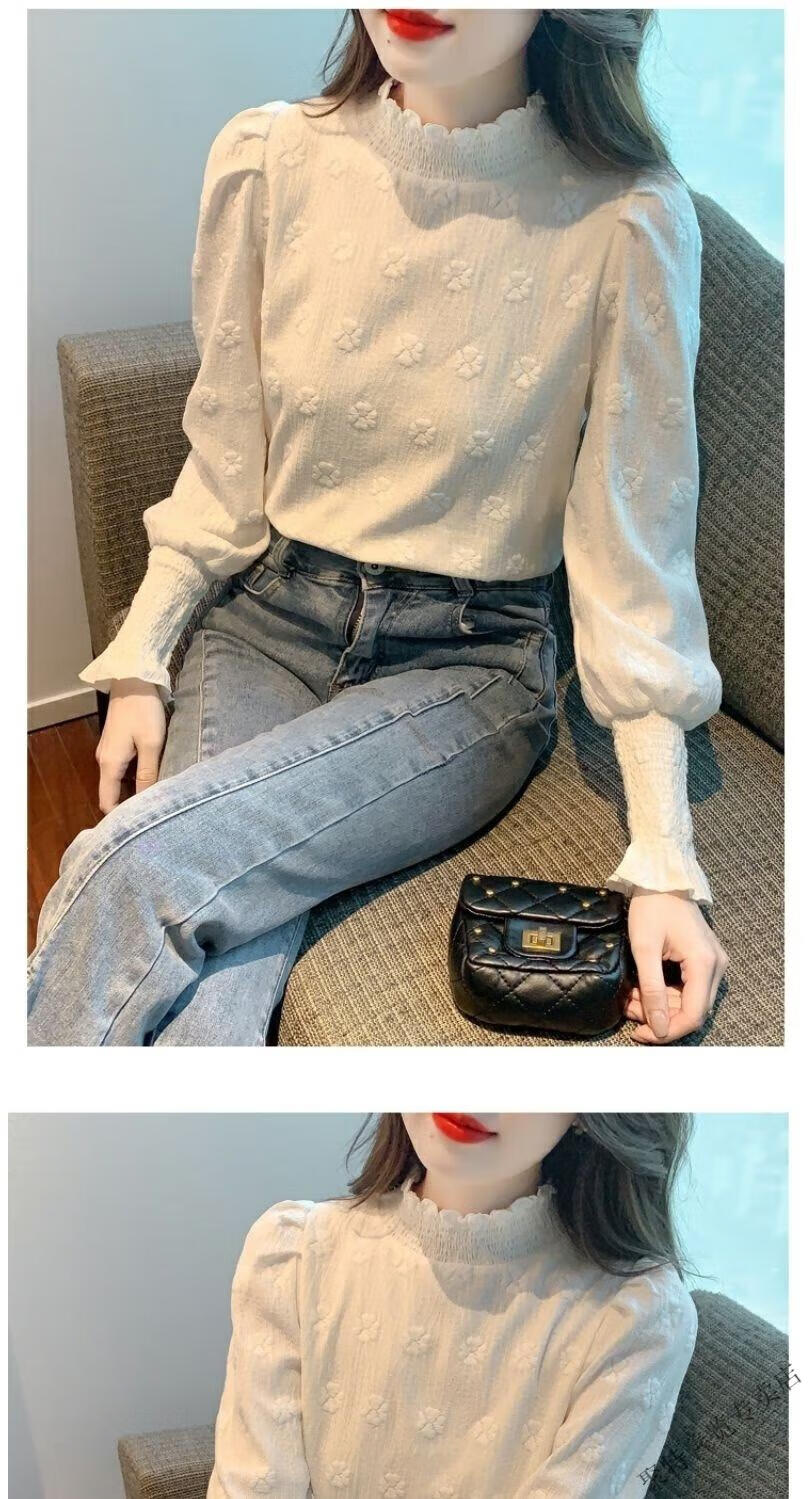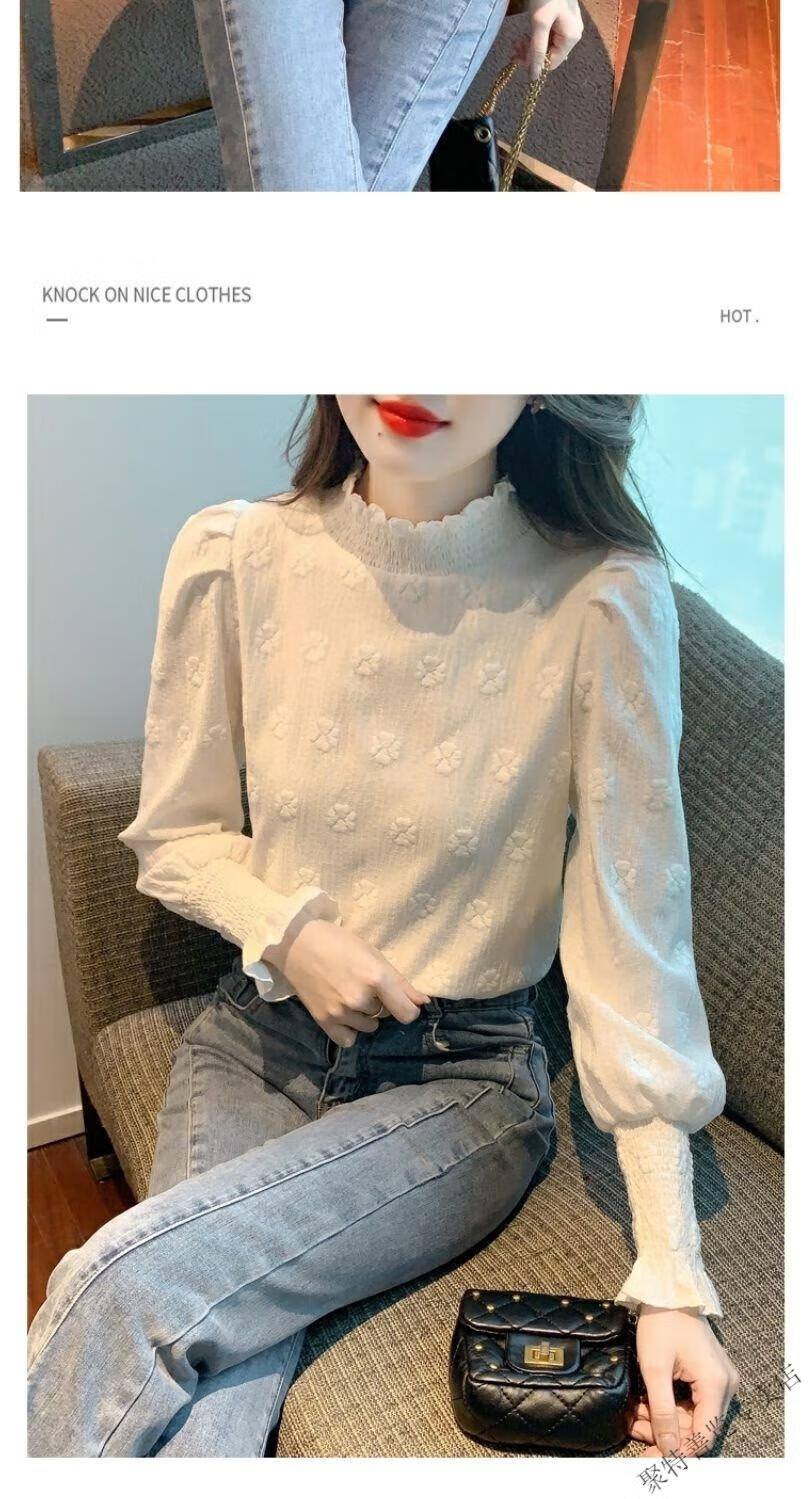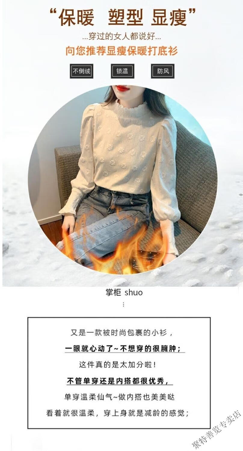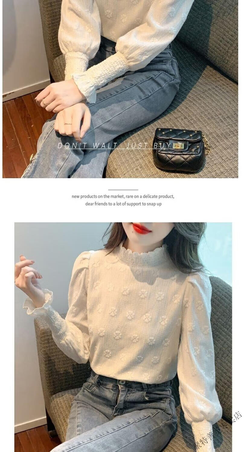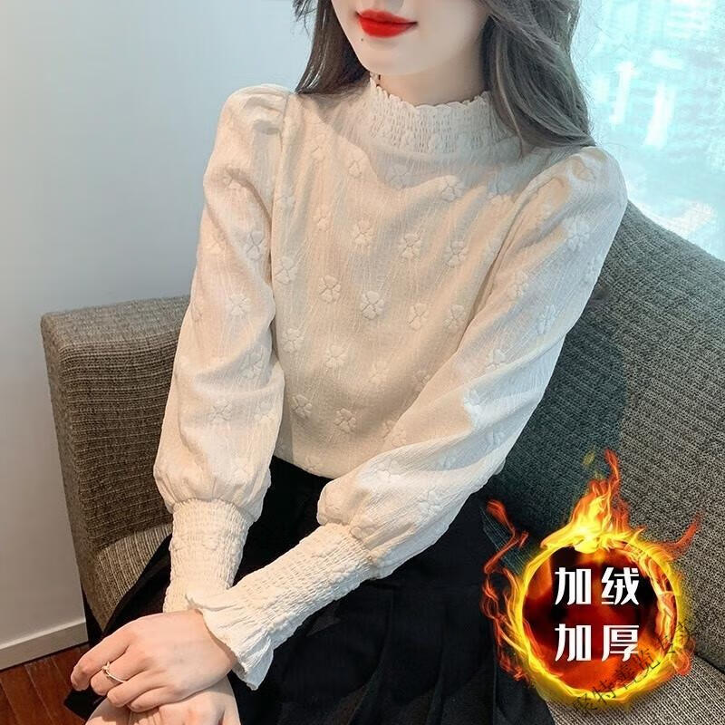 Woodpecker (TUCANO) velvet thickened lace jacquard bottoming shirt for women spring and autumn 2025 new stand-up collar lantern long-sleeved style versatile top apricot silver fox velvet plus velvet M 100-110 catties