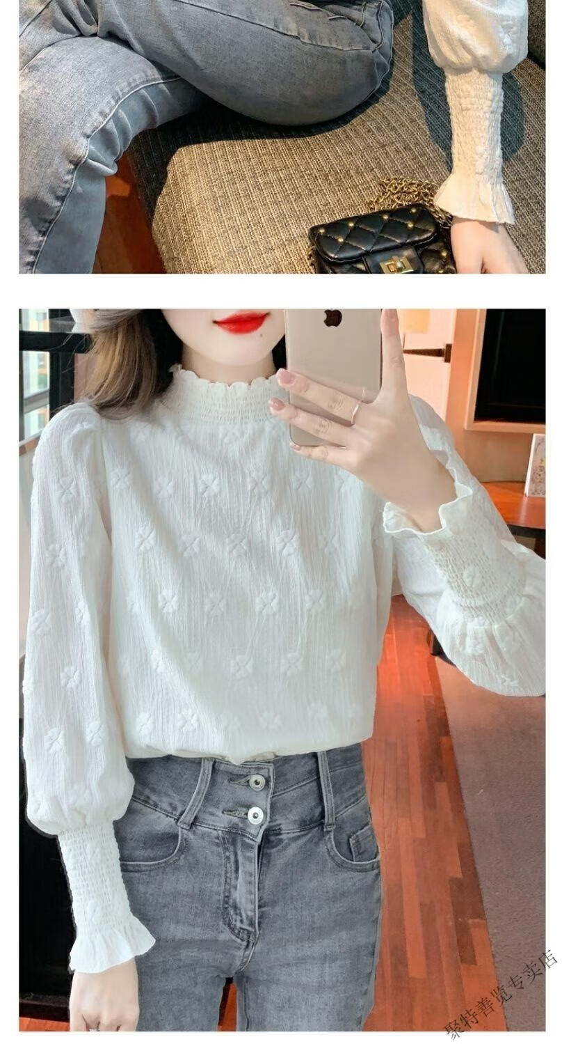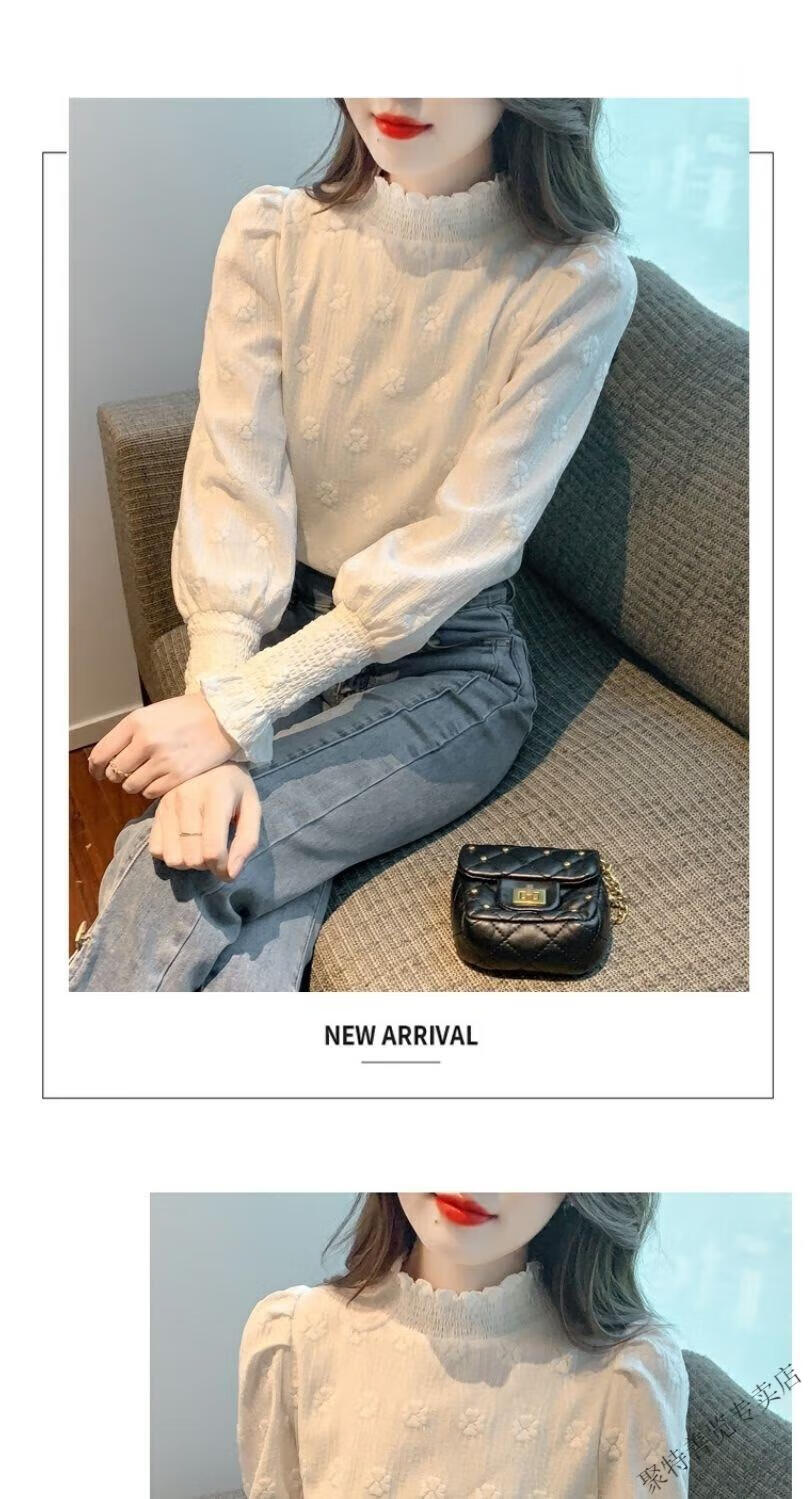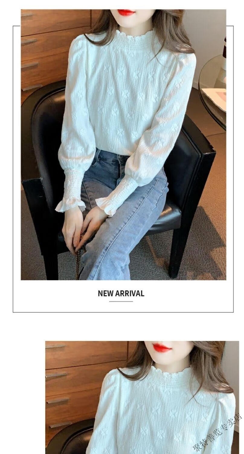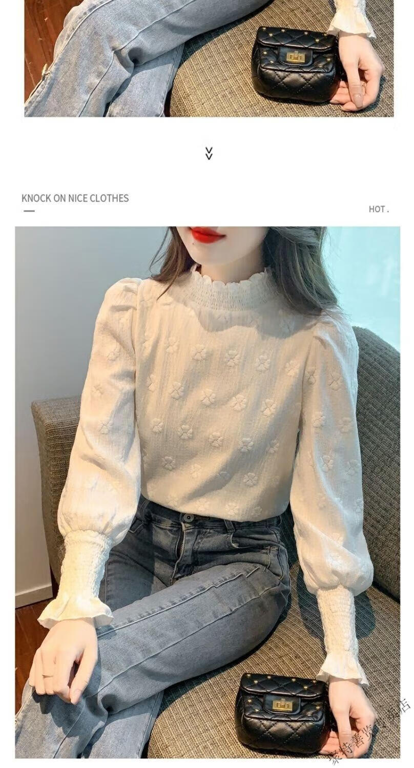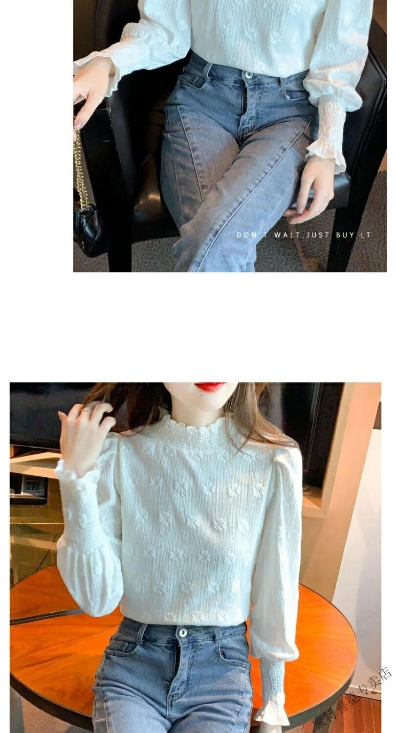 Woodpecker (TUCANO) velvet thickened lace jacquard bottoming shirt for women spring and autumn 2025 new stand-up collar lantern long-sleeved style versatile top apricot silver fox velvet plus velvet M 100-110 catties