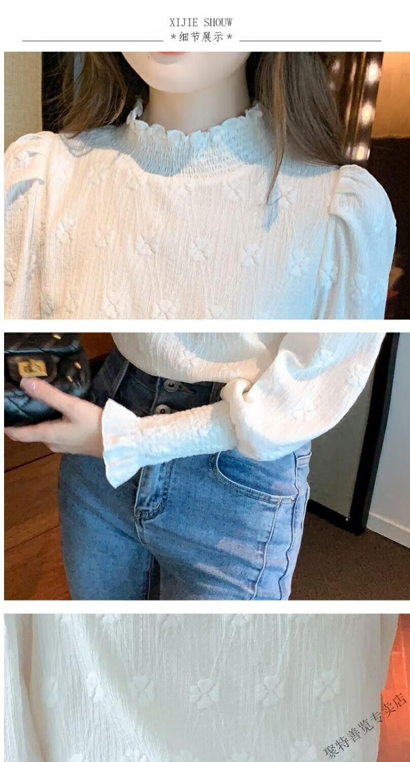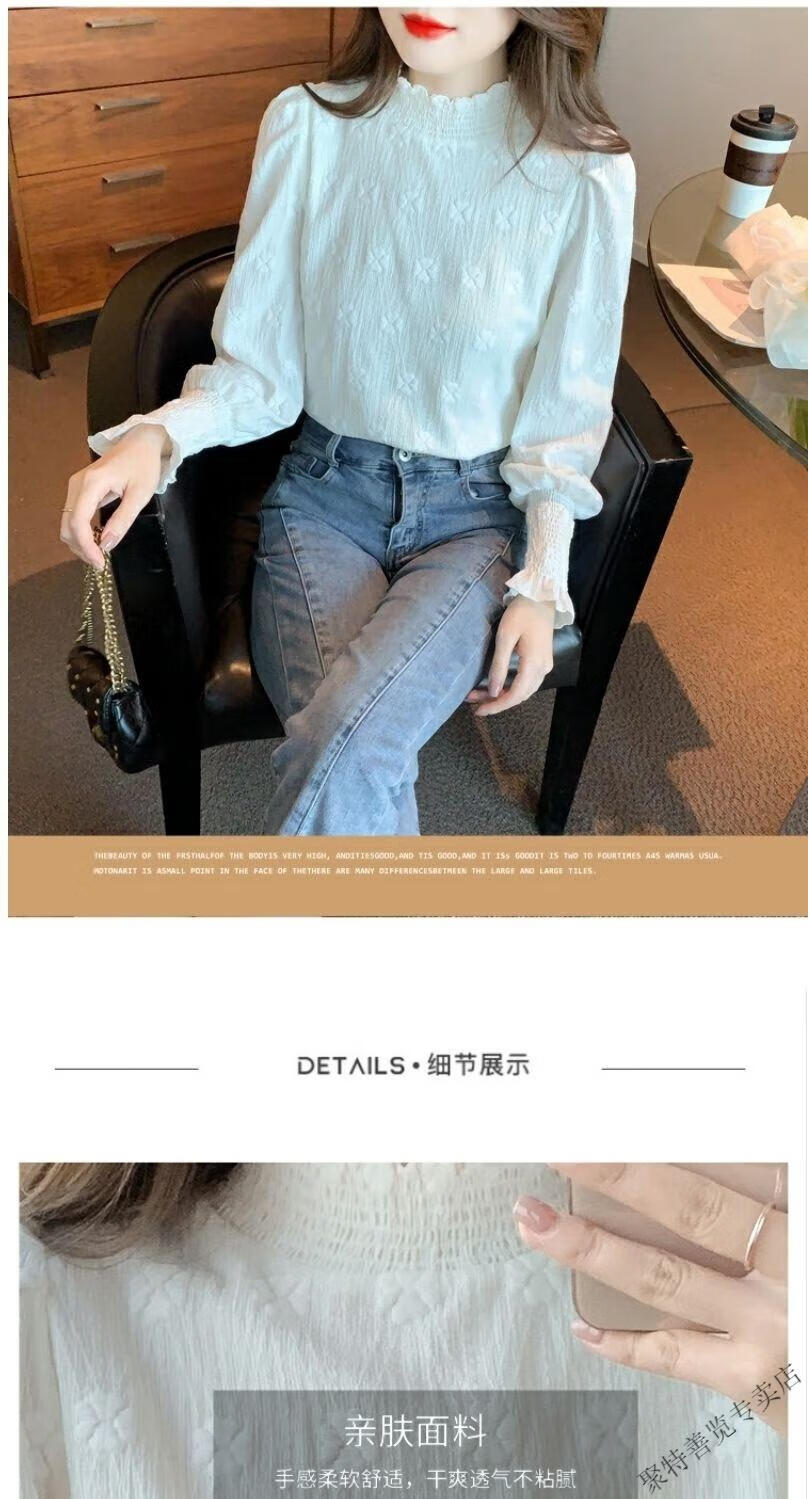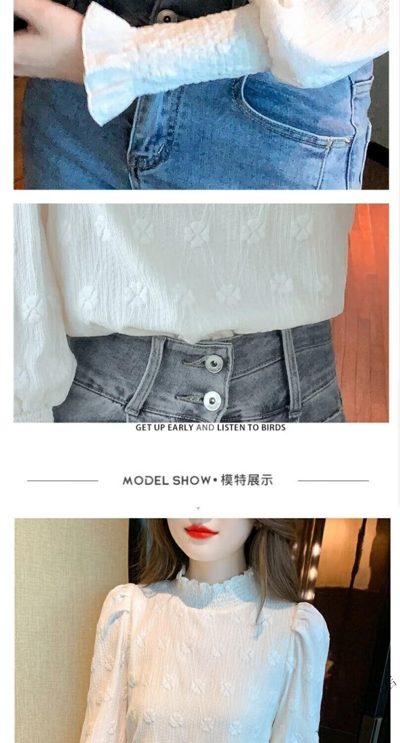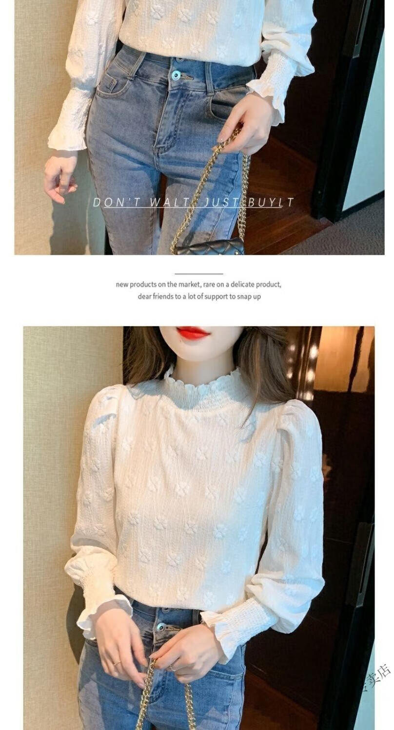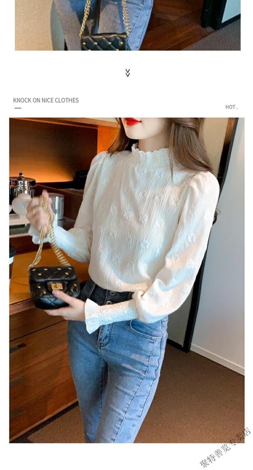 Woodpecker (TUCANO) velvet thickened lace jacquard bottoming shirt for women spring and autumn 2025 new stand-up collar lantern long-sleeved style versatile top apricot silver fox velvet plus velvet M 100-110 catties