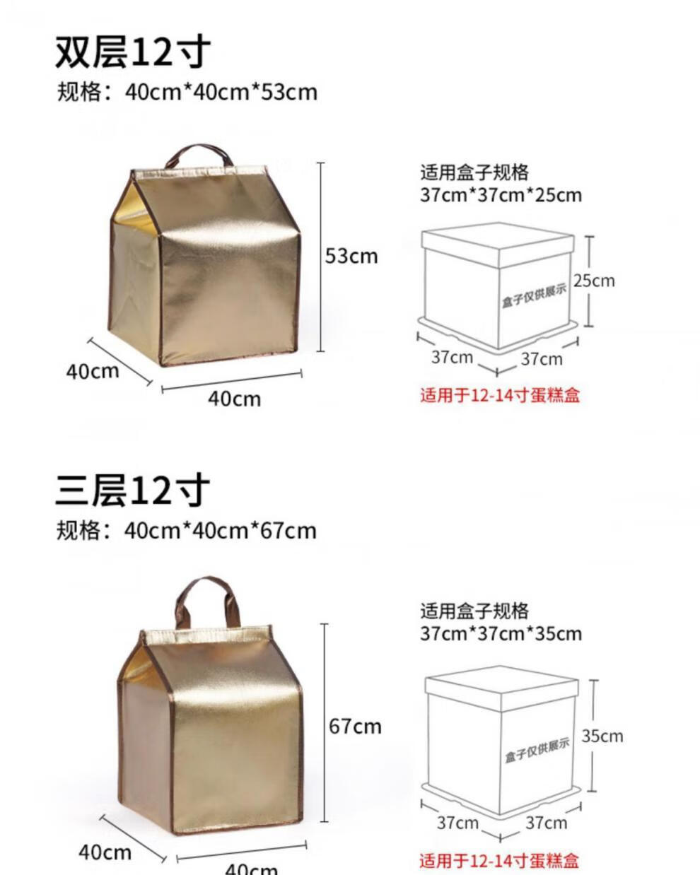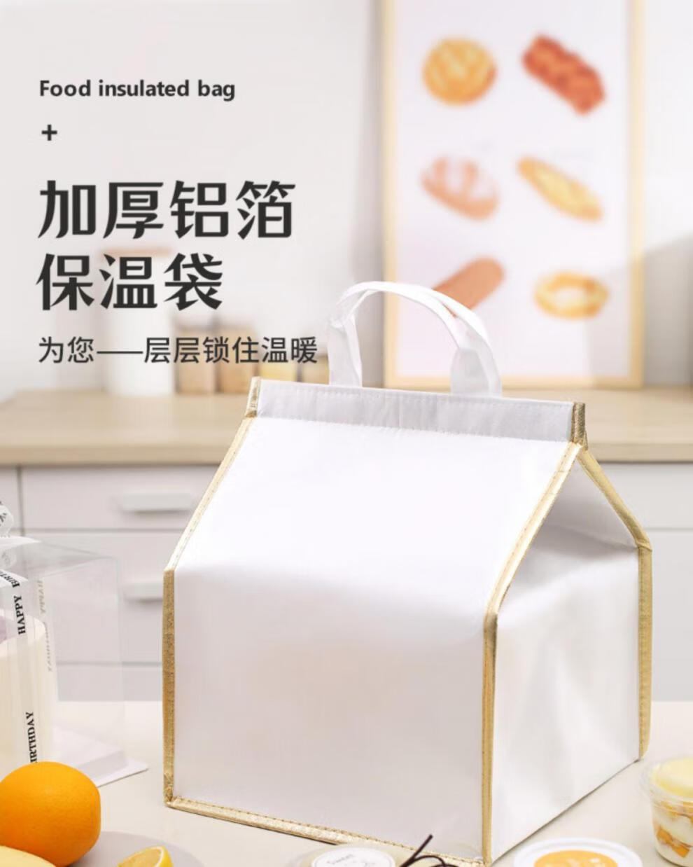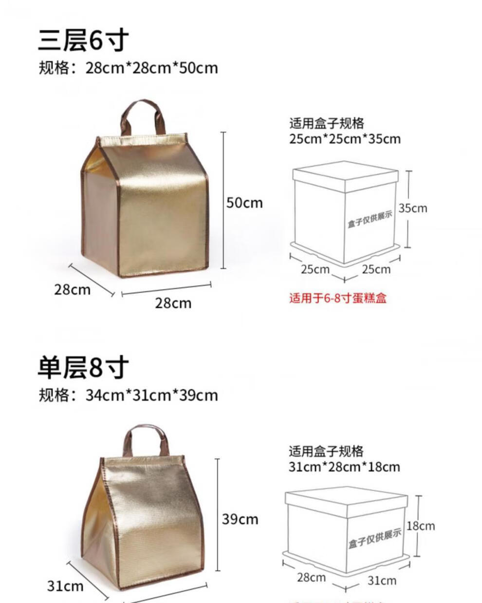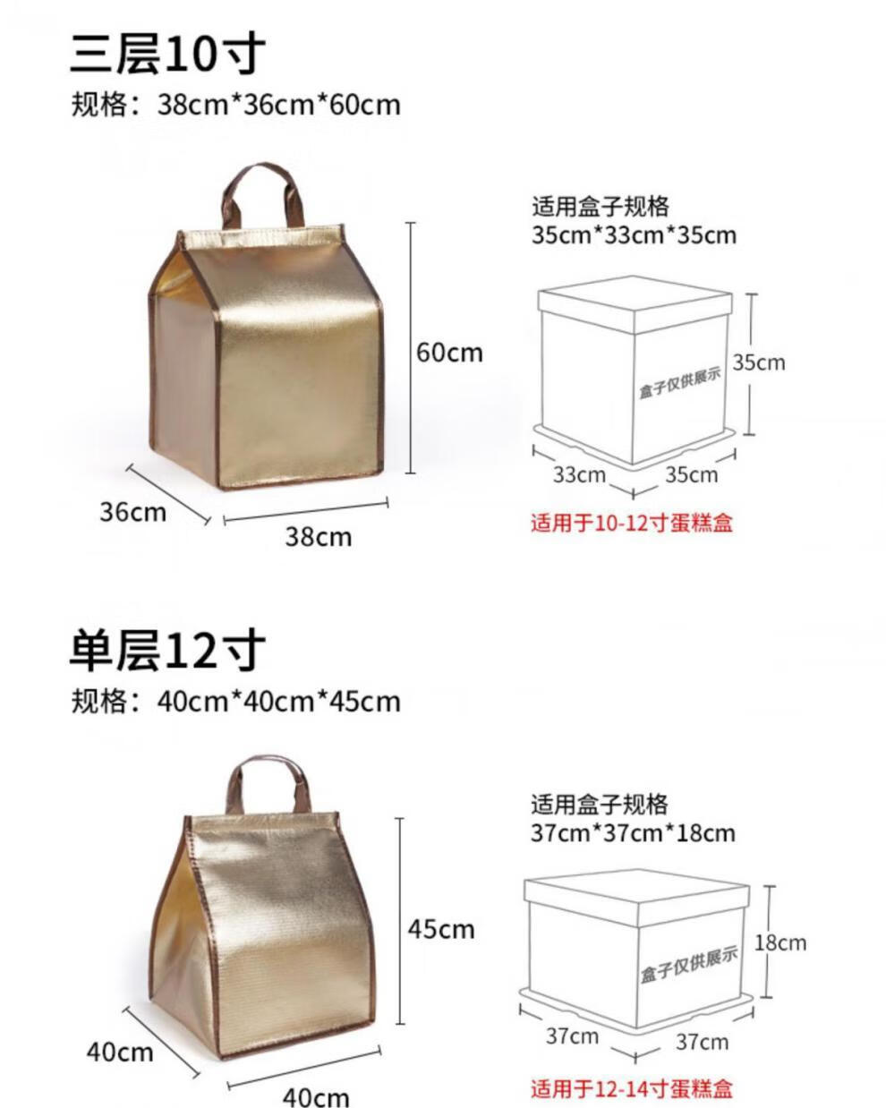 Yuhua Cake Insulated Bag Thickened Aluminum Foil Waterproof Lunch Box Picnic Fresh-keeping Bag Insulated Bag Takeaway Portable Cooling Bag 10-Inch Gold Three-Layer (Extra High)