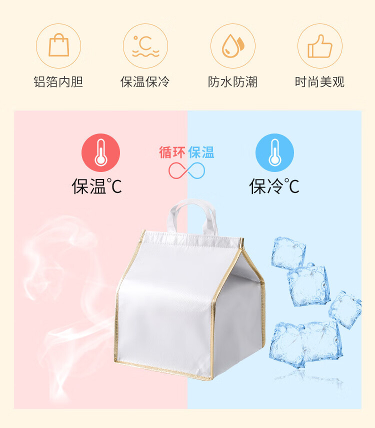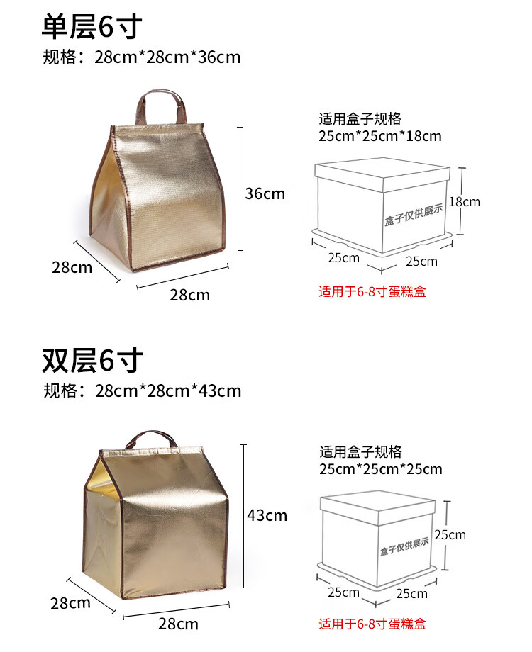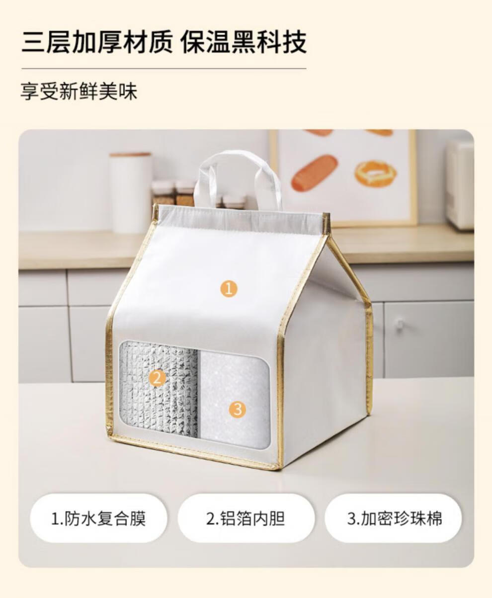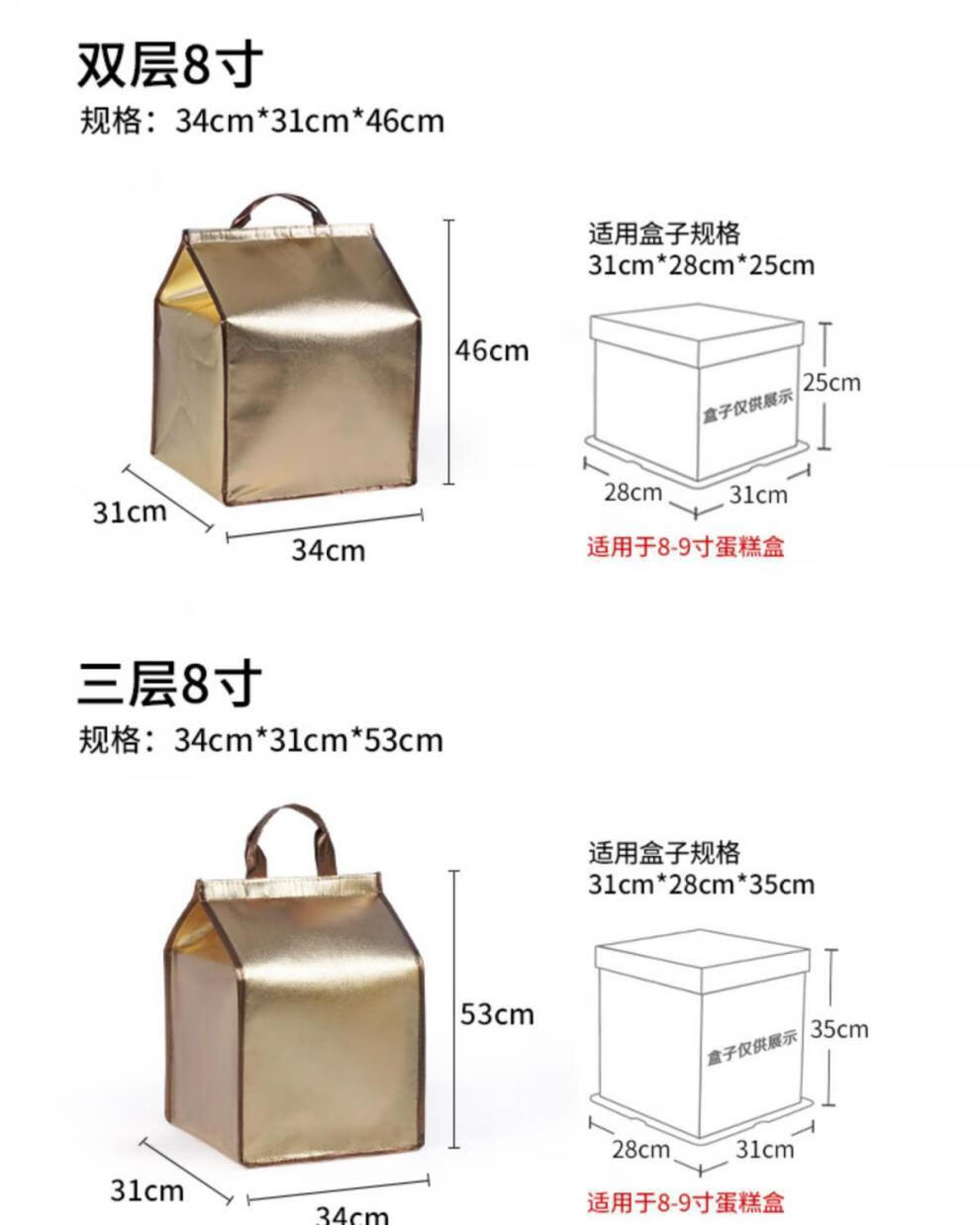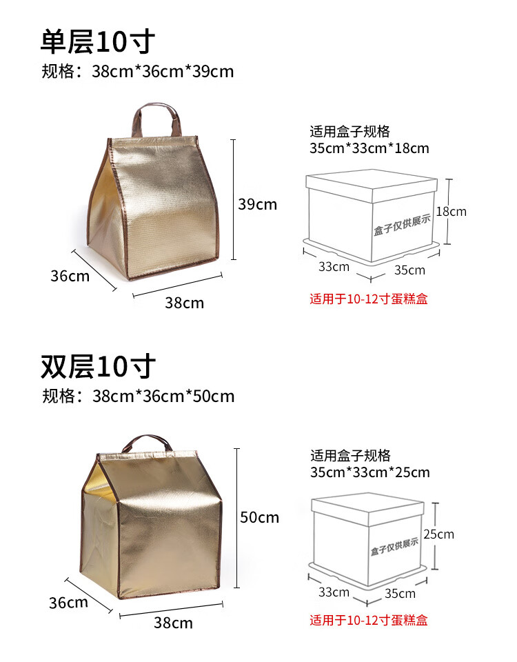 Yuhua Cake Insulated Bag Thickened Aluminum Foil Waterproof Lunch Box Picnic Fresh-keeping Bag Insulated Bag Takeaway Portable Cooling Bag 10-Inch Gold Three-Layer (Extra High)