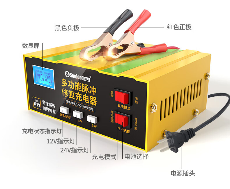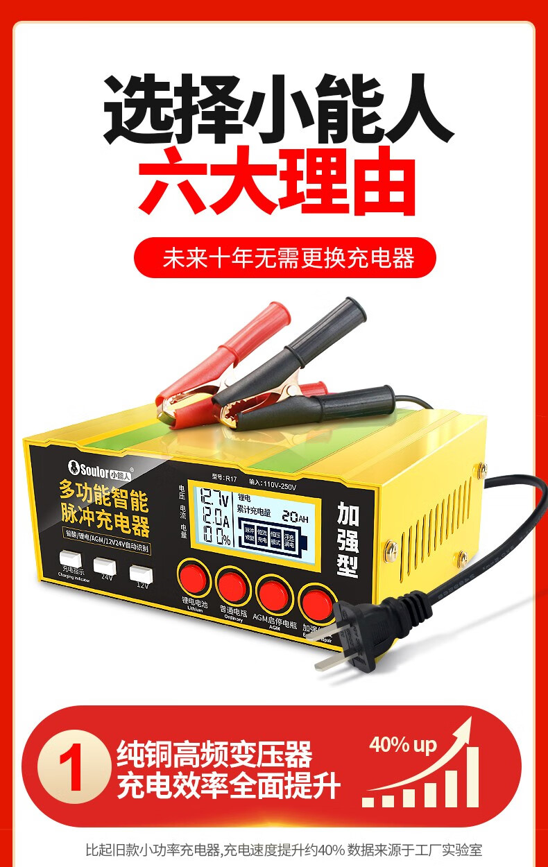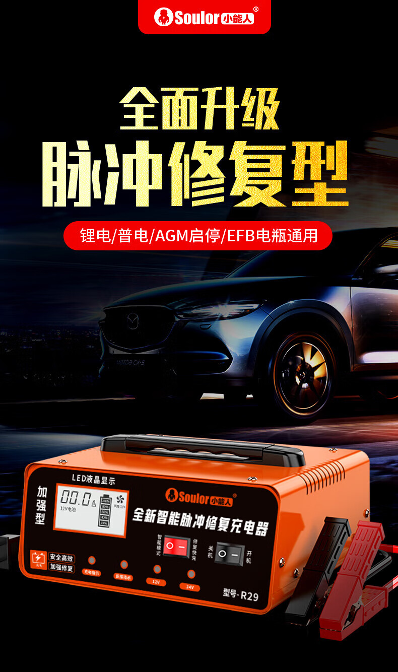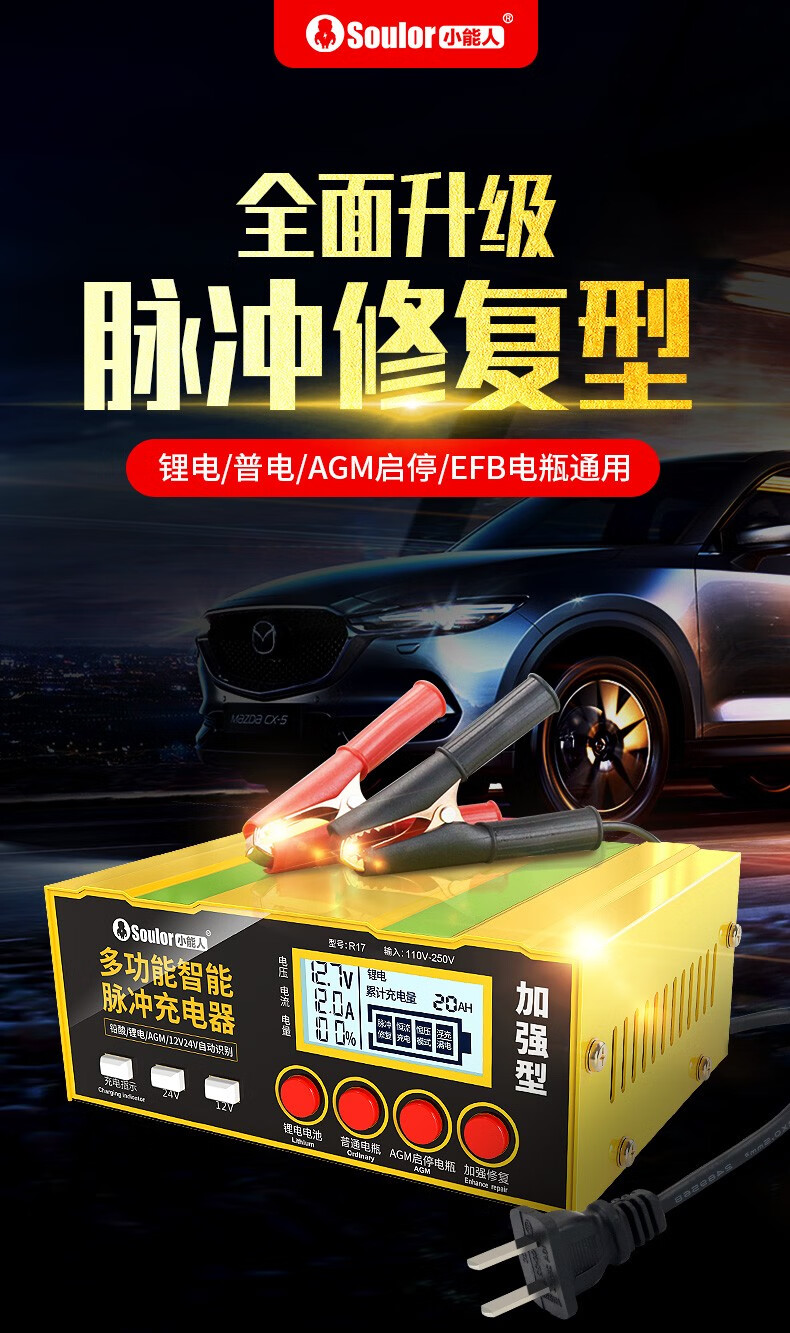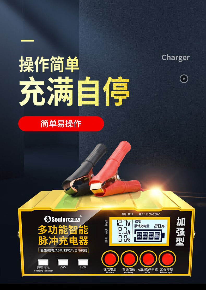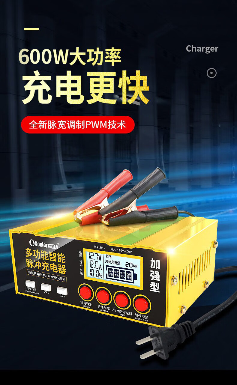 Xiaonengren car battery charger fully automatic repair intelligent digital display 12V24V universal pure copper car and truck charging luxury version fast charge upgraded pure copper 600W