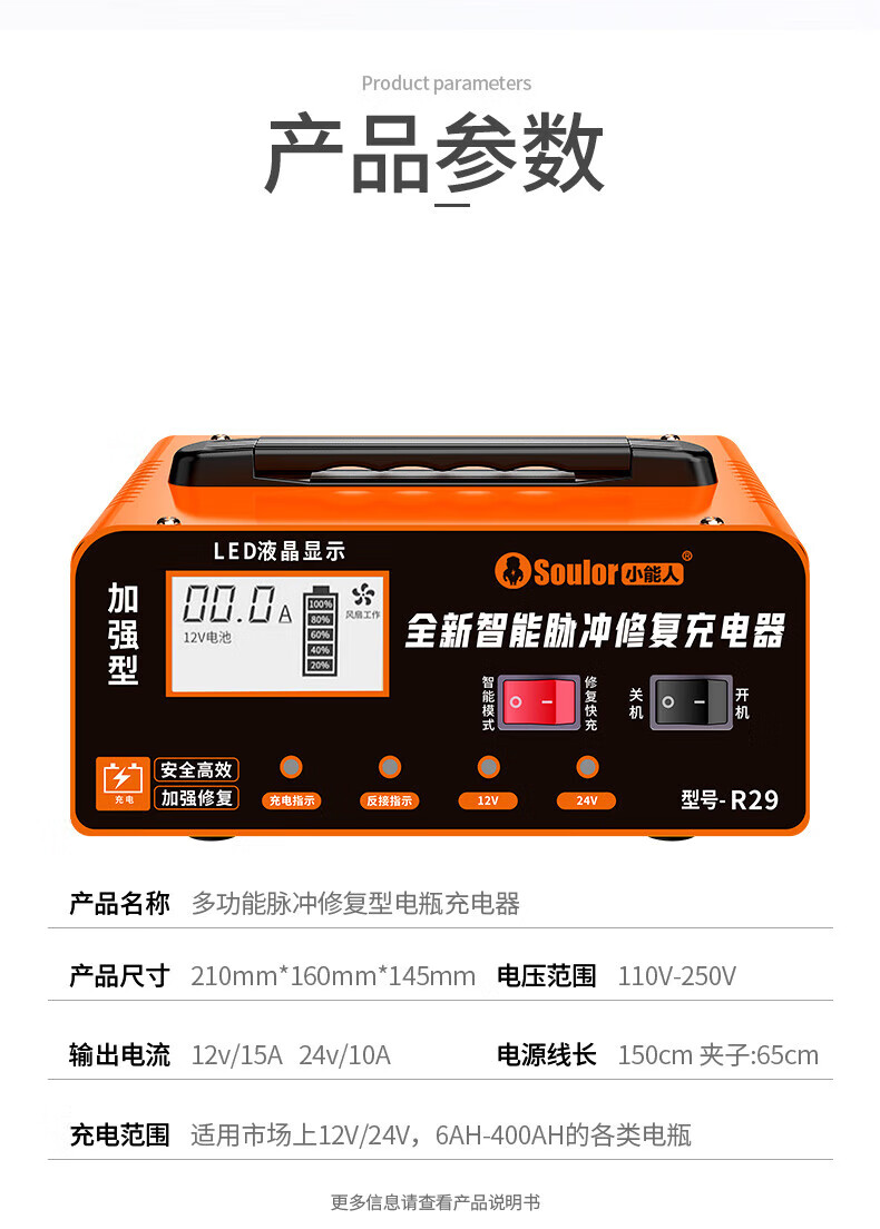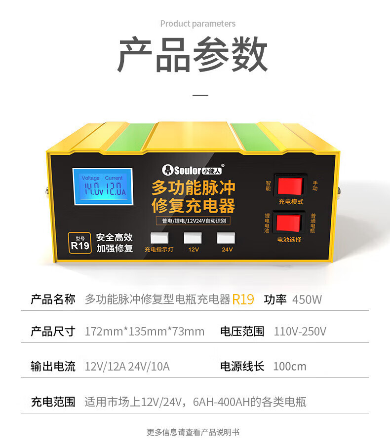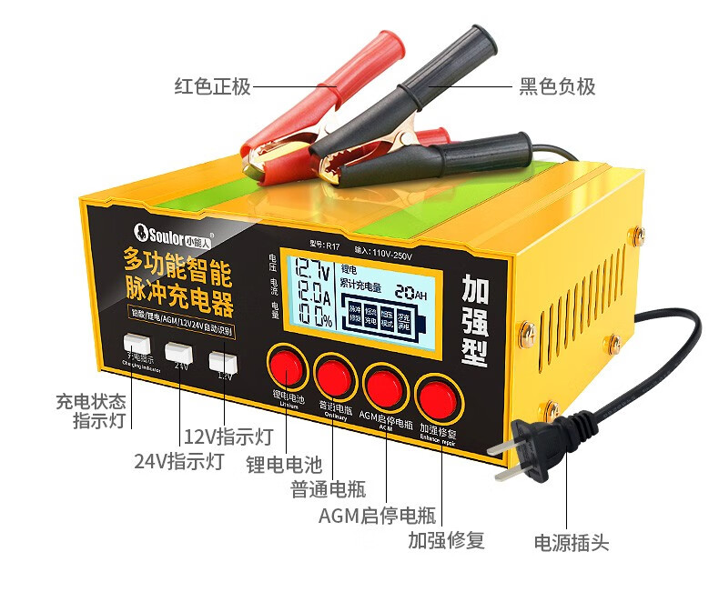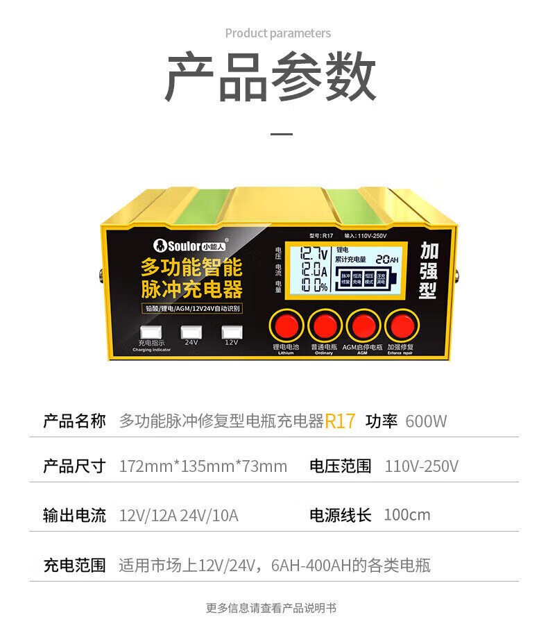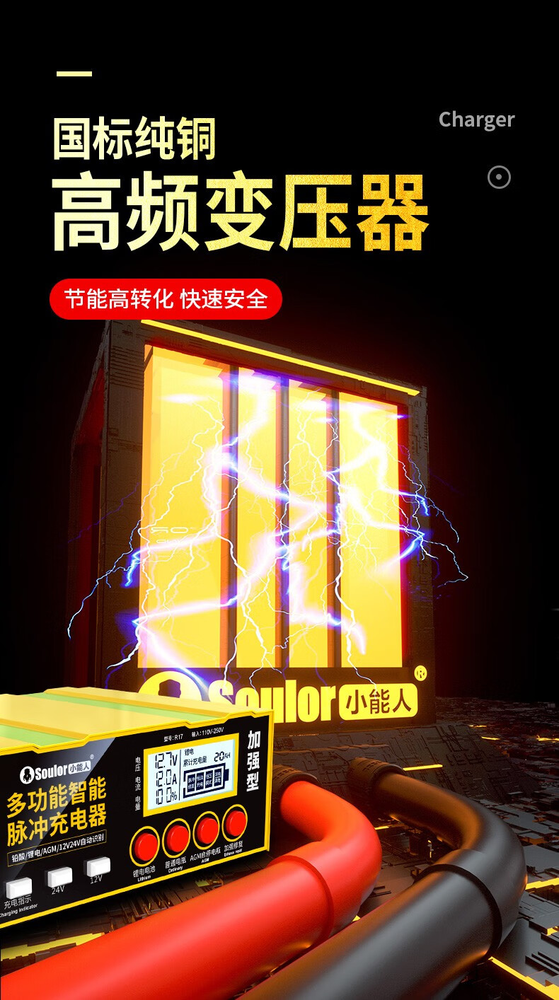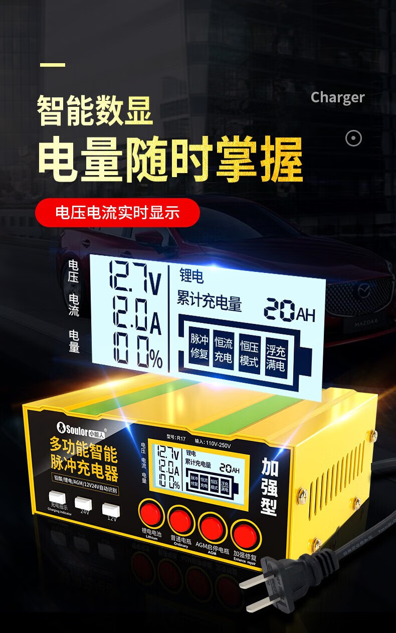 Xiaonengren car battery charger fully automatic repair intelligent digital display 12V24V universal pure copper car and truck charging luxury version fast charge upgraded pure copper 600W