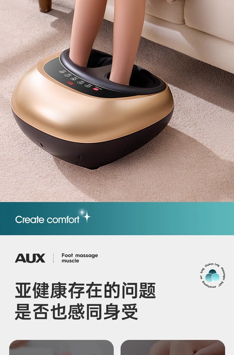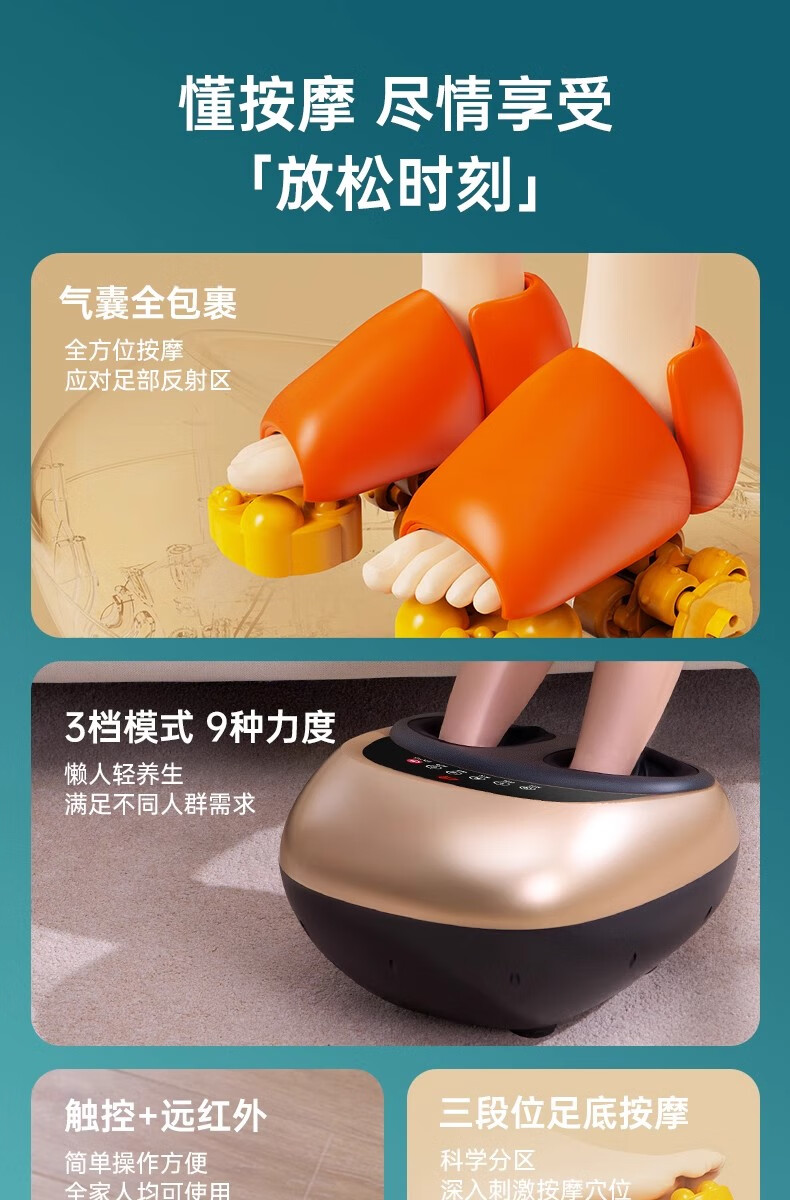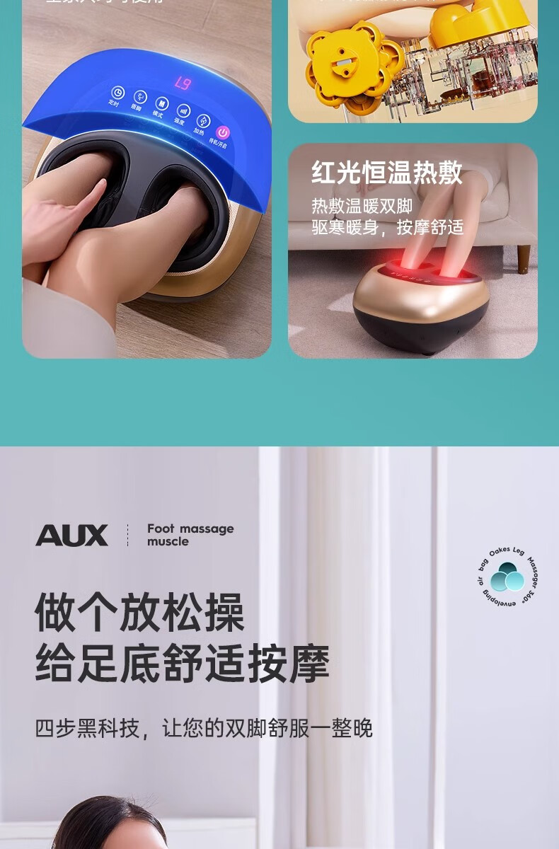 Oaks foot massager foot massage machine for soles of feet and legs. Practical birthday gift for the elderly and elders. Healthy Parents' Day birthday gift for mom and dad. Exclusive gold 6-button LCD screen + 6 massage techniques + 4D air bag massage