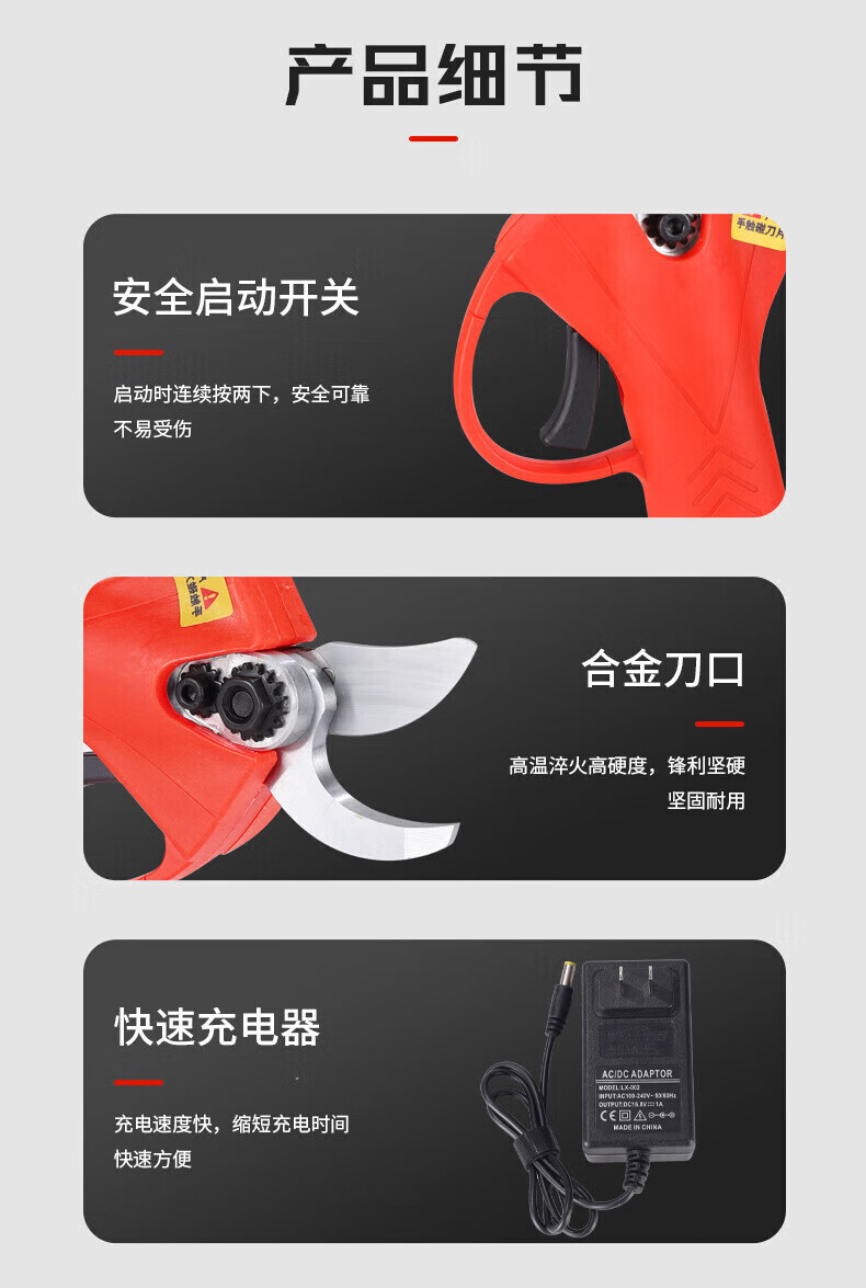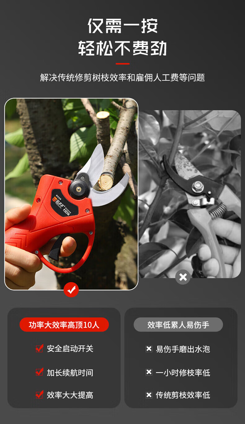 Tianduoduo electric pruning shears, fruit tree scissors, lithium battery electric scissors, rechargeable shears, pruning shears, stainless steel, one charge, one charge