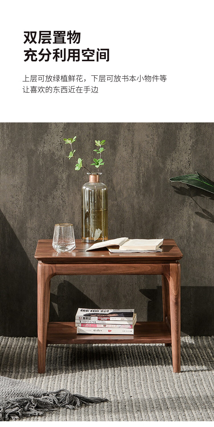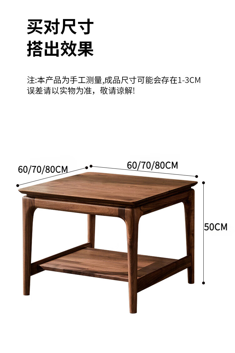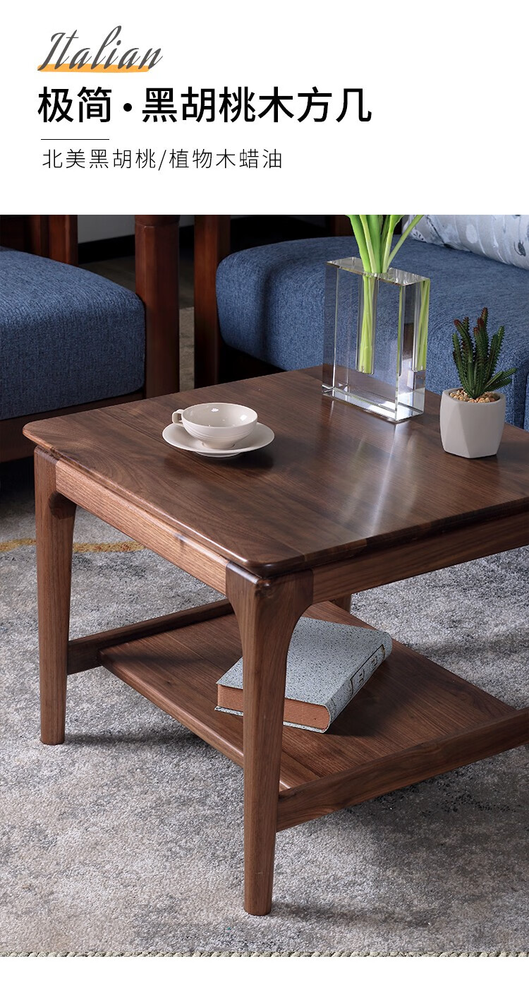 Printed Youth (Youth) North American black walnut sofa side table Simple light luxury living room solid wood small apartment square table corner table North American black walnut 70*70*50cm
