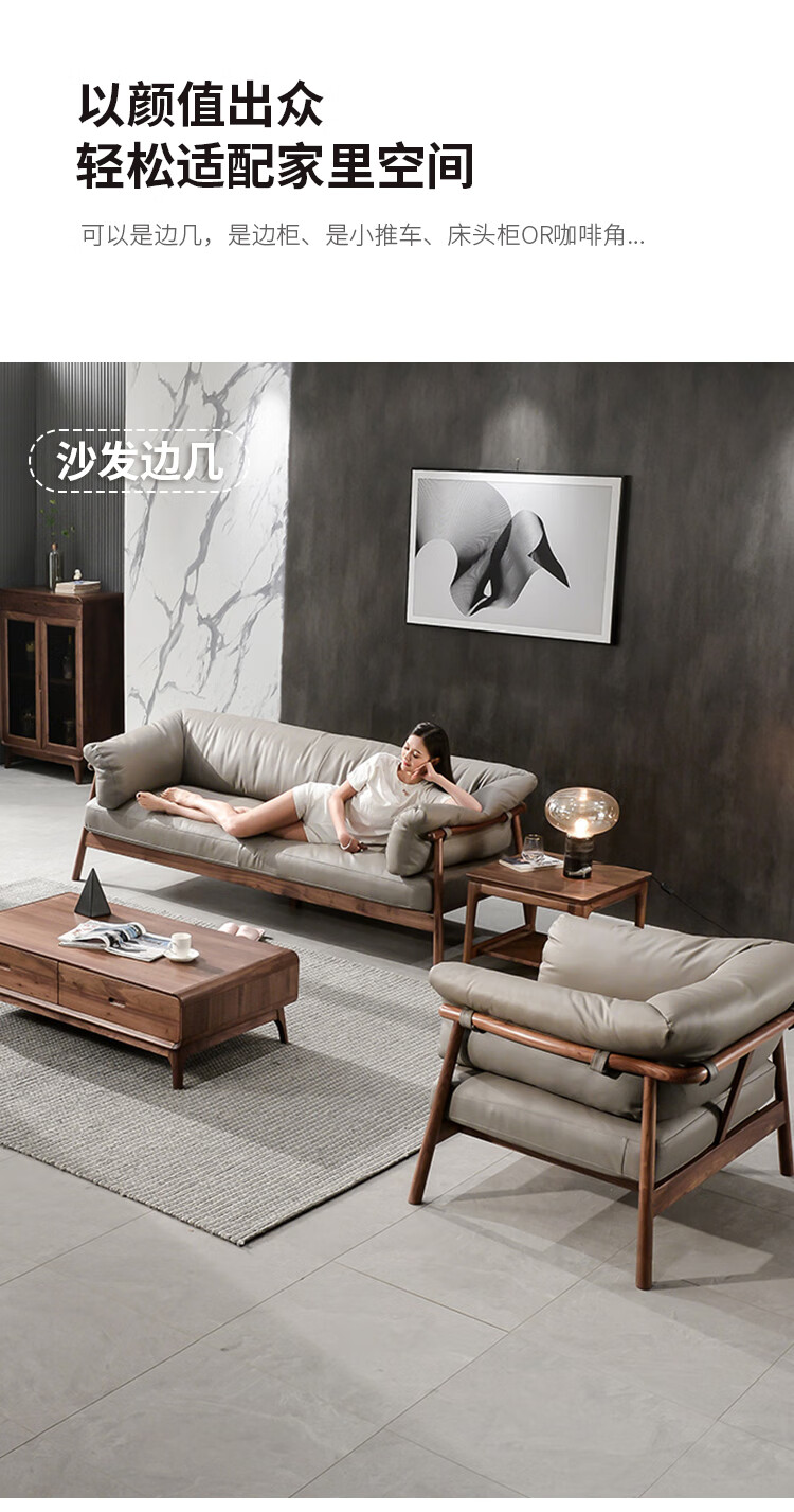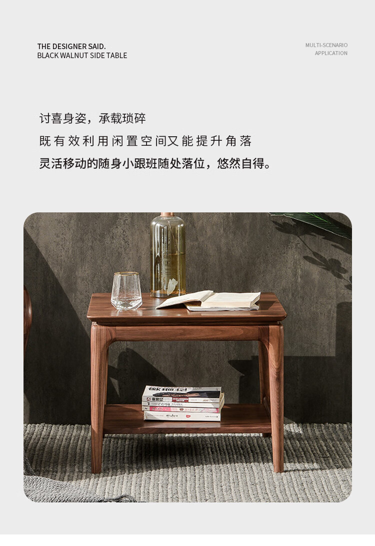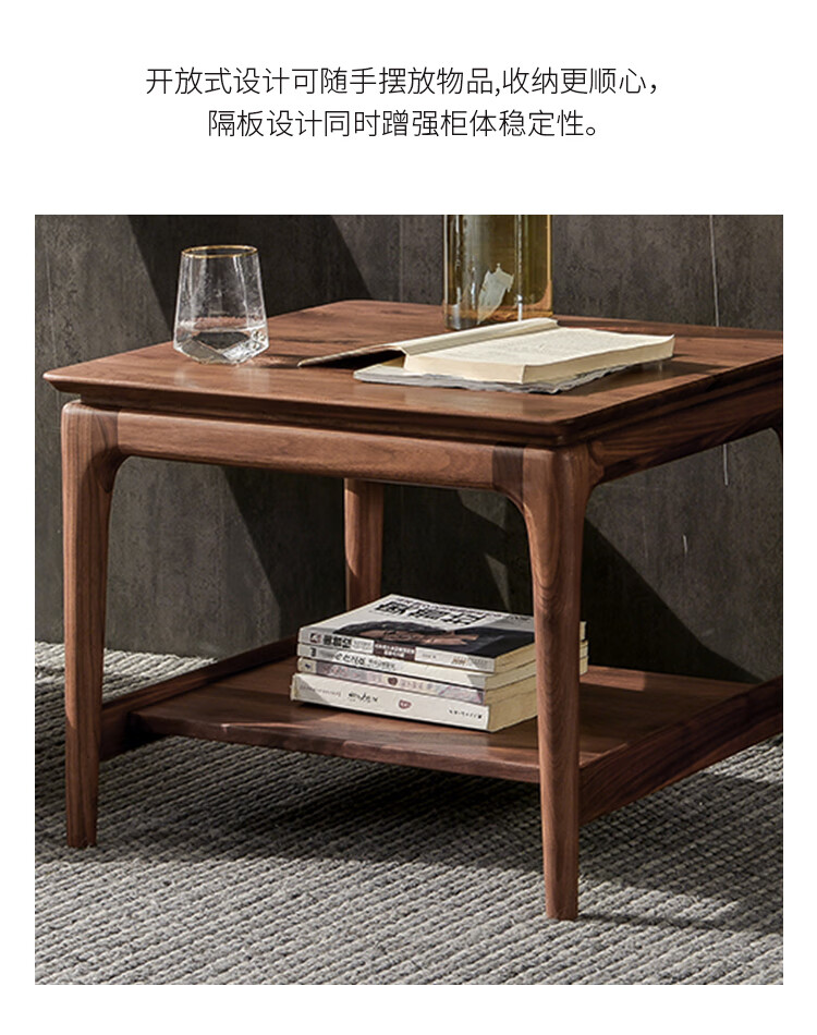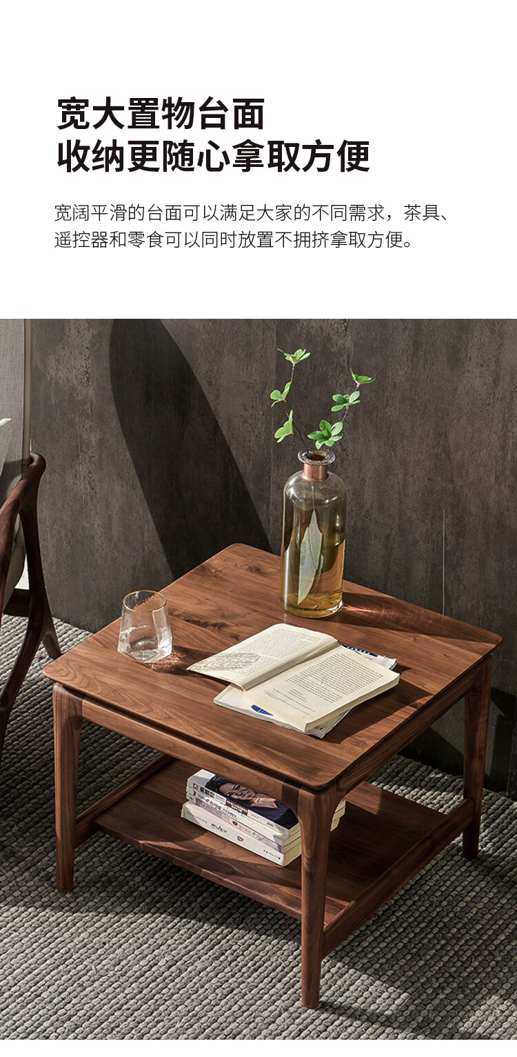 Printed Youth (Youth) North American black walnut sofa side table Simple light luxury living room solid wood small apartment square table corner table North American black walnut 70*70*50cm
