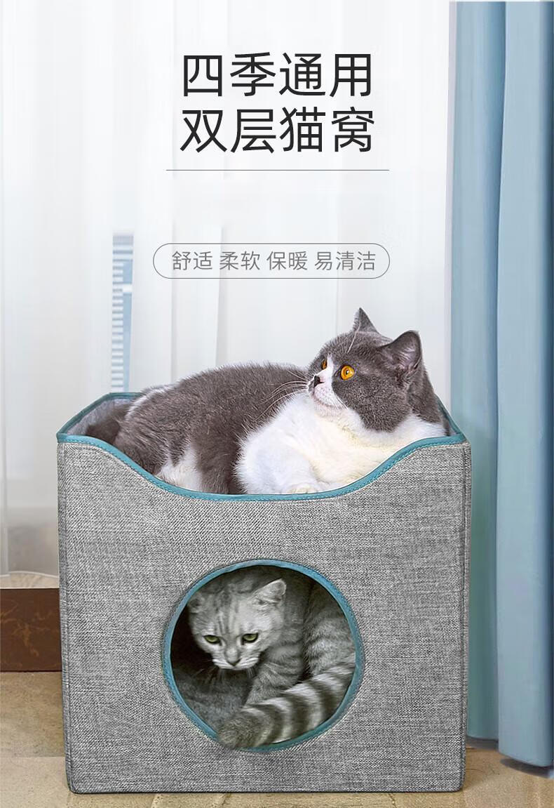 Pilot Cat House Winter Dog House Winter Warm Double-layer Closed Folding Cat and Dog House with Mat All Seasons Upgraded Side Scratching Fur Ball-Double Layer Suitable for 20 catties or less