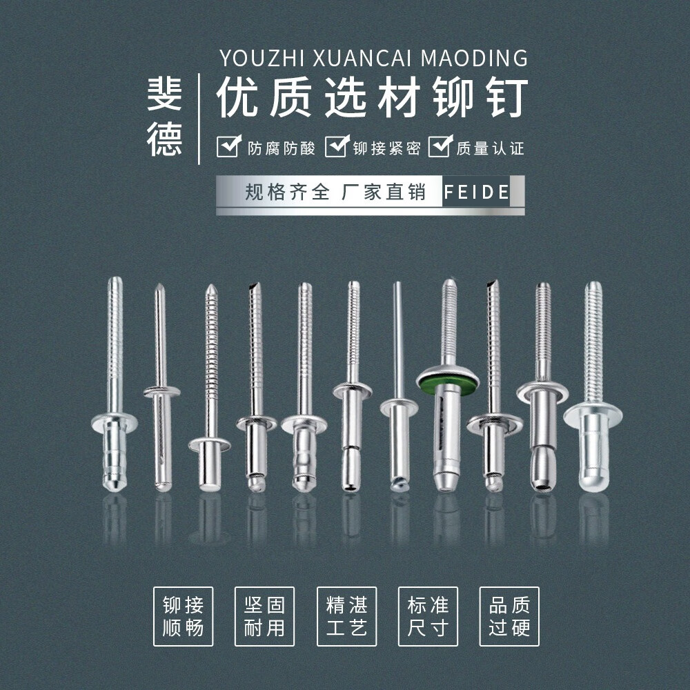 Feide open core blind rivet aluminum rivet stainless steel rivet 2.4-6.4 full series national standard GB12618 aluminum alloy cap iron nail core K 4*10 (100 pieces)