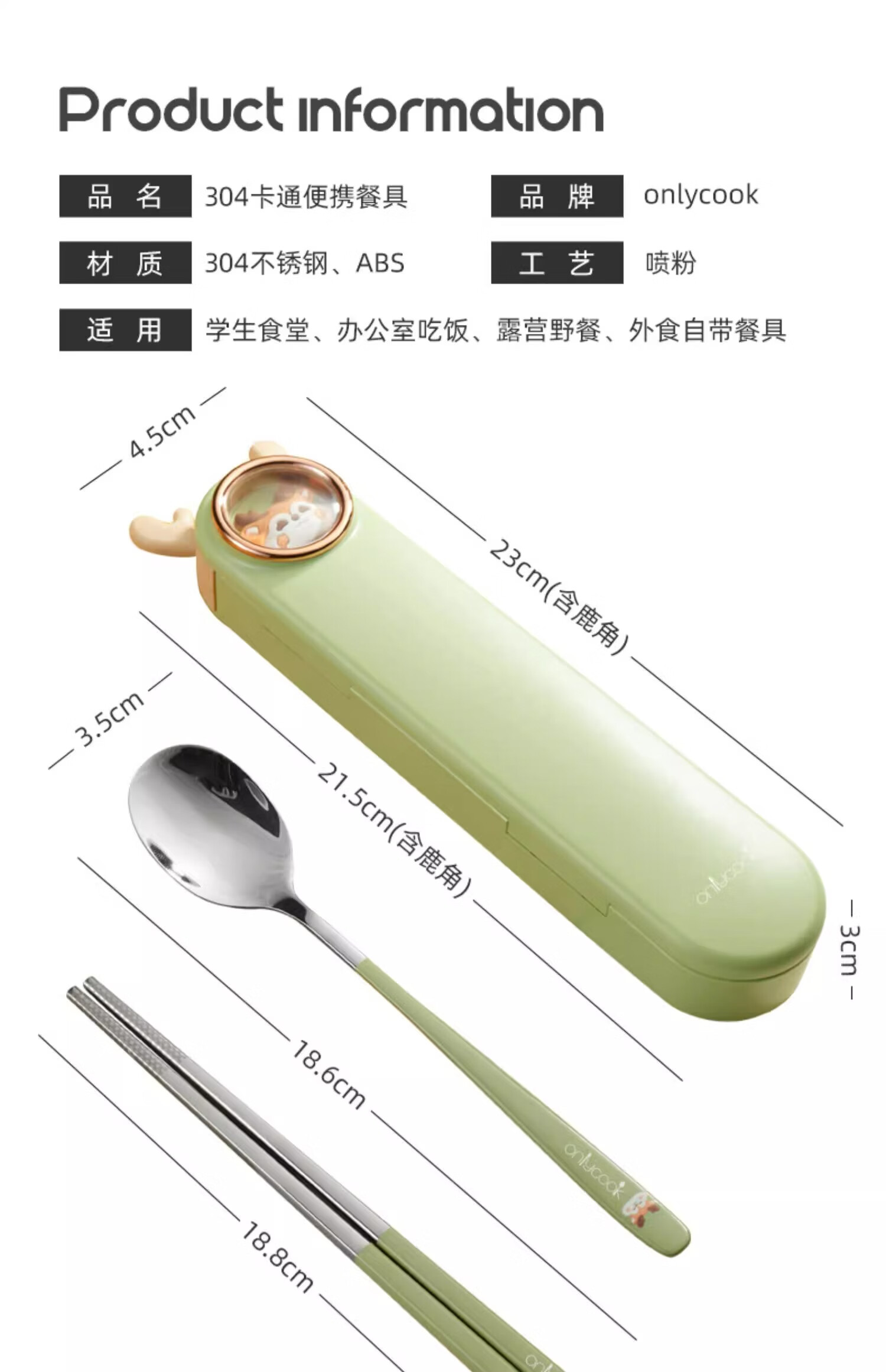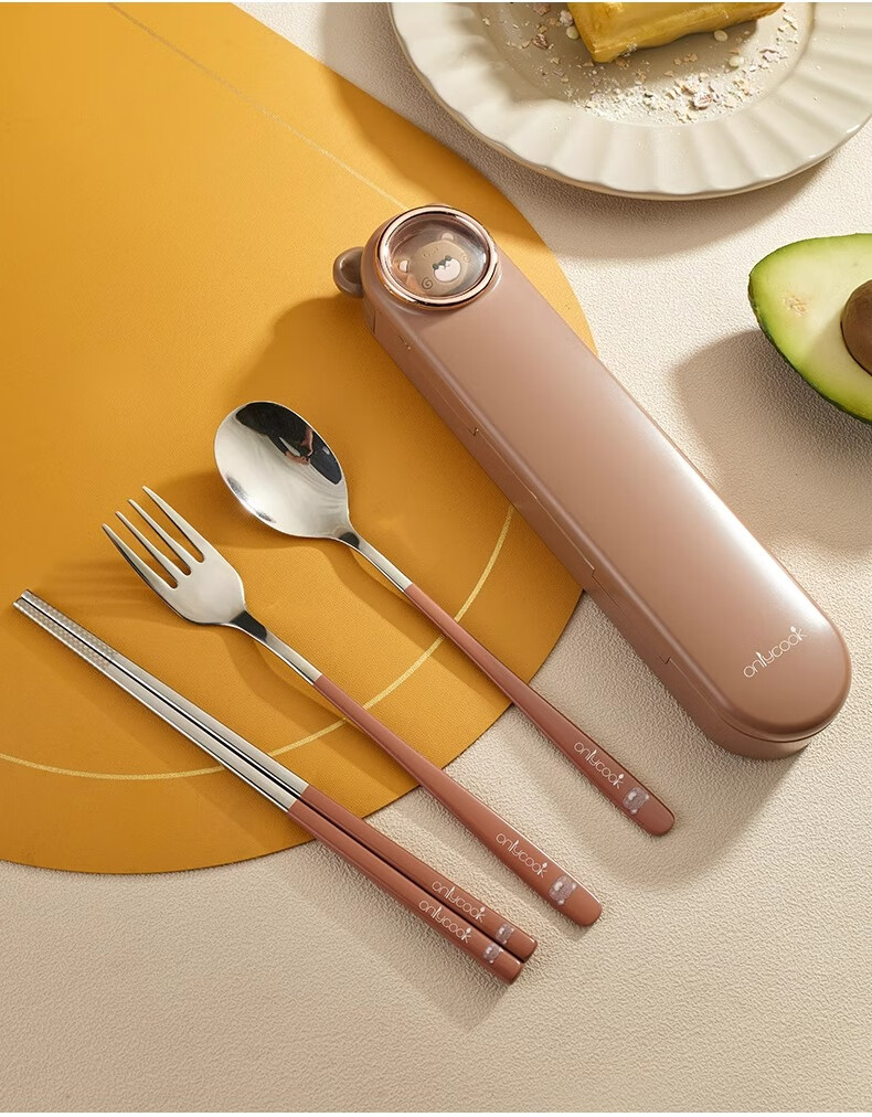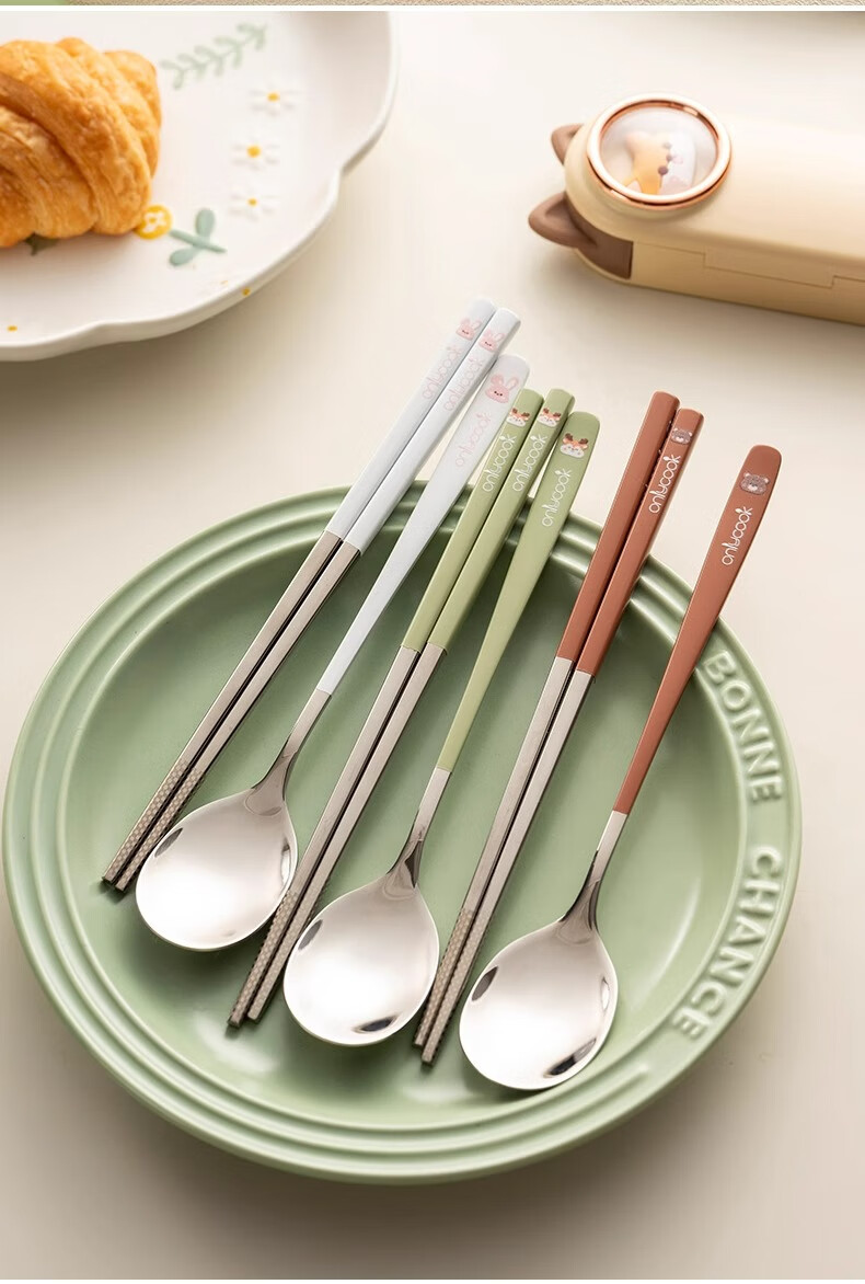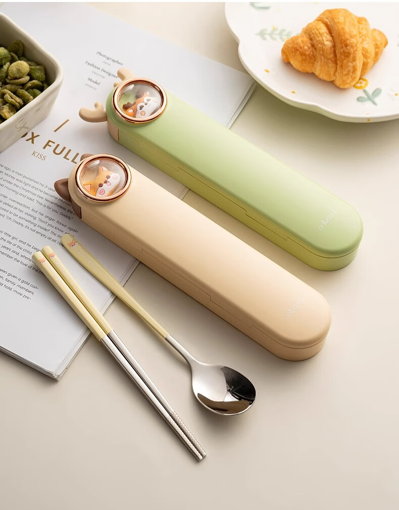 Onlycook cute cartoon portable tableware new 304 stainless steel chopsticks and spoon set chopsticks and spoon storage box wooden chopsticks stainless steel spoon 2-piece set yellow puppy