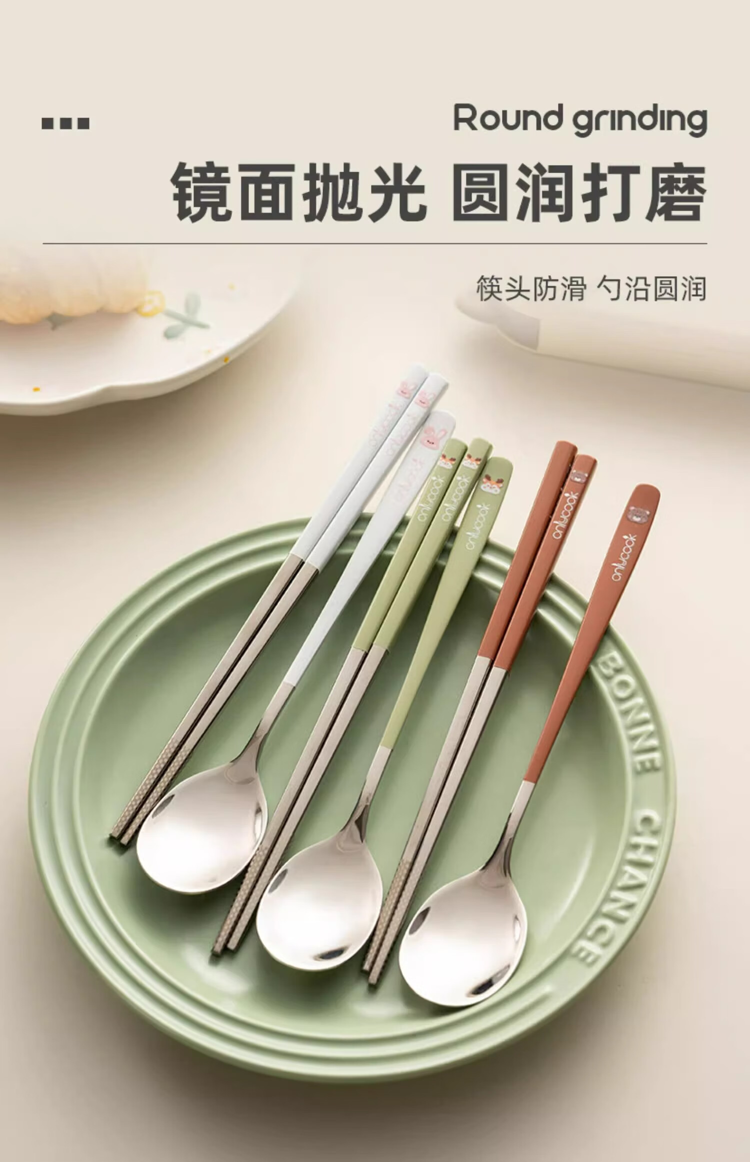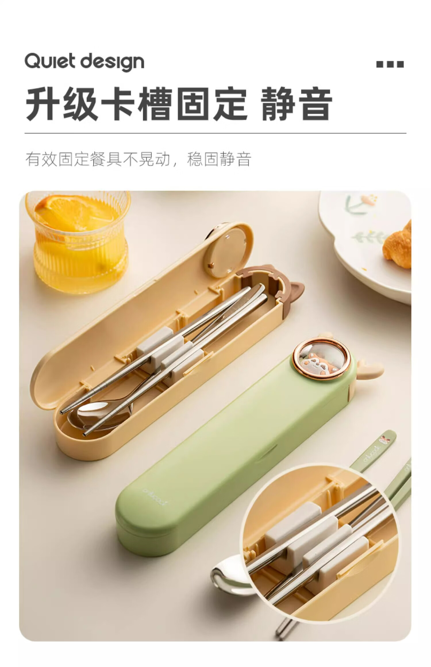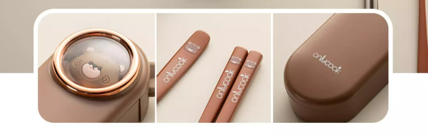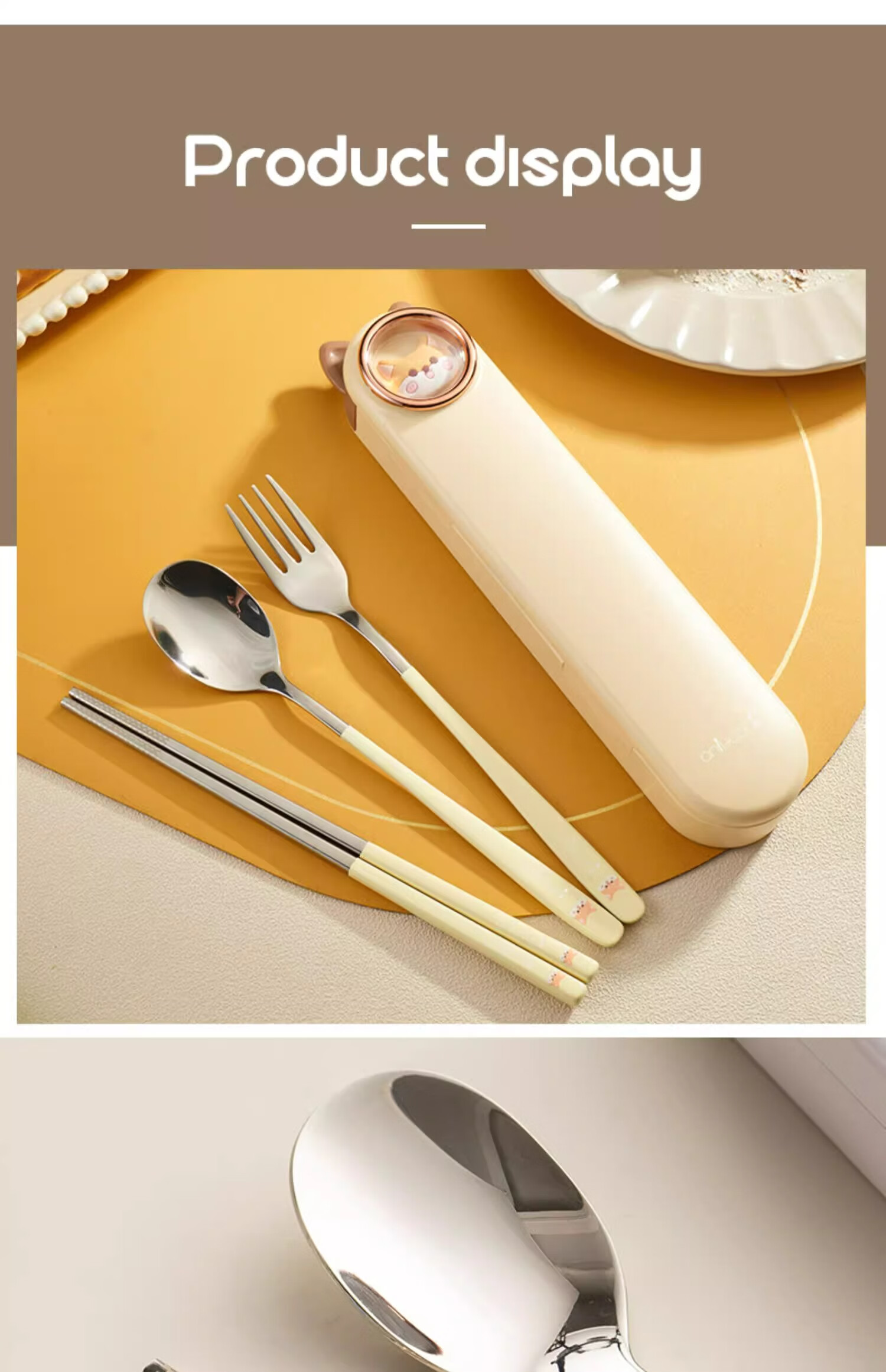 Onlycook cute cartoon portable tableware new 304 stainless steel chopsticks and spoon set chopsticks and spoon storage box wooden chopsticks stainless steel spoon 2-piece set yellow puppy