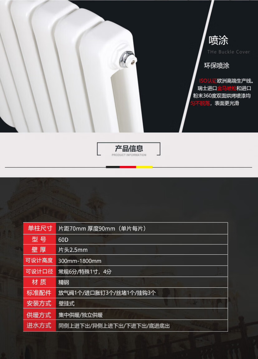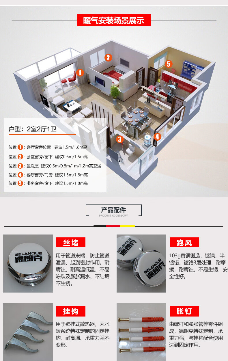 Delanke household steel radiator bathroom heating equipment living room central heating column radiator 600mm