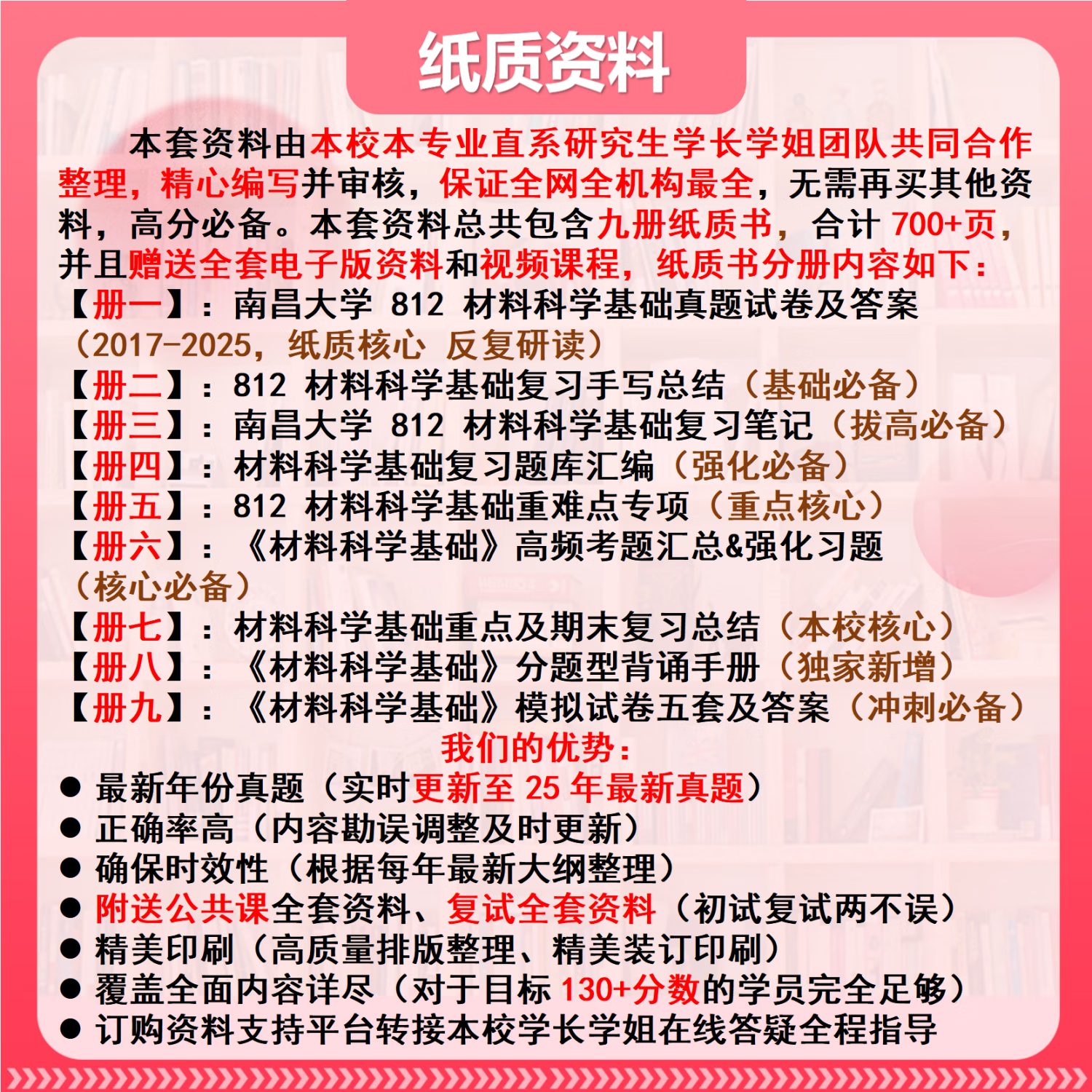26 New version of Nanchang University 812 Materials Science Basics Postgraduate Entrance Examination Nanda Materials Engineering Preliminary Exam Questions Full set of professional course materials and tutorials, the most complete on the Internet Nine volumes of paper books + full set of electronic versions + video courses