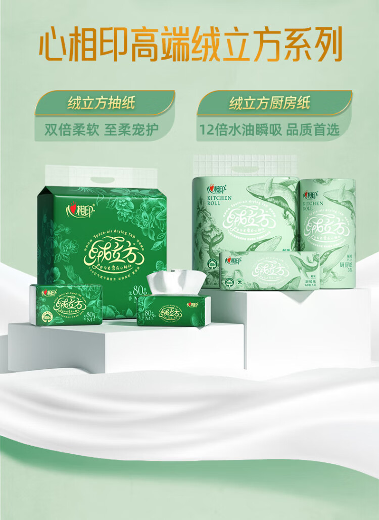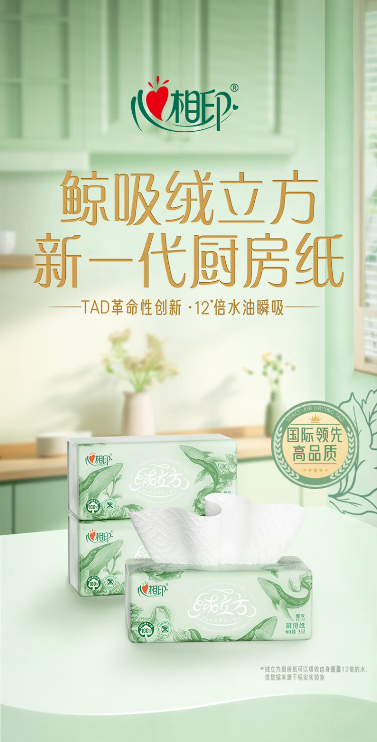 Heart-to-heart, Tian Xuning's same model, kitchen paper velvet cube series, washable rags, thickened oil-absorbing rags, hygienic household use, 3 layers, 60 cigarettes*4 packs