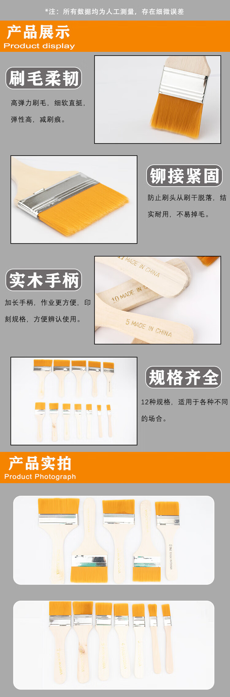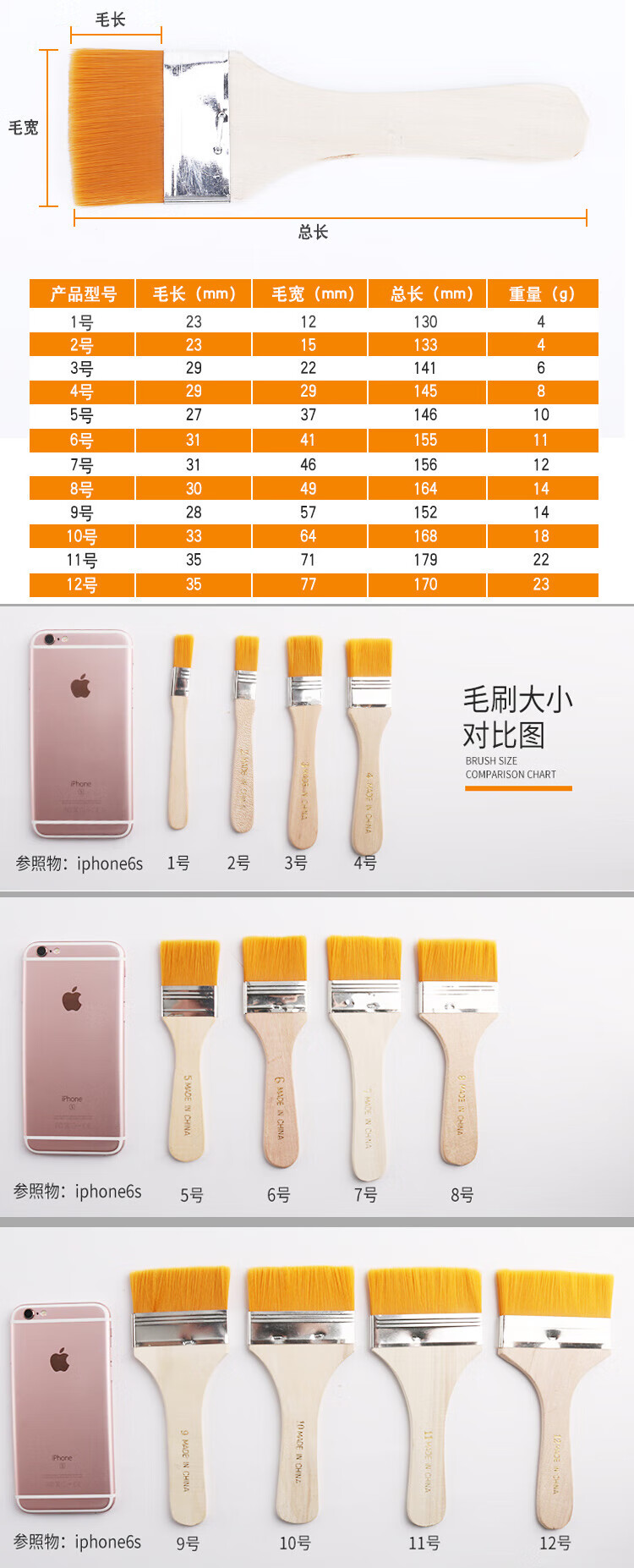 Jinshiluo KT-268 nylon bristle board brush paint brush wooden handle brush art paint brush cleaning dust brush 10#