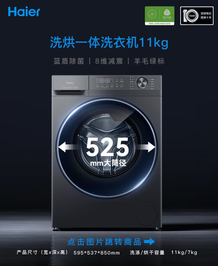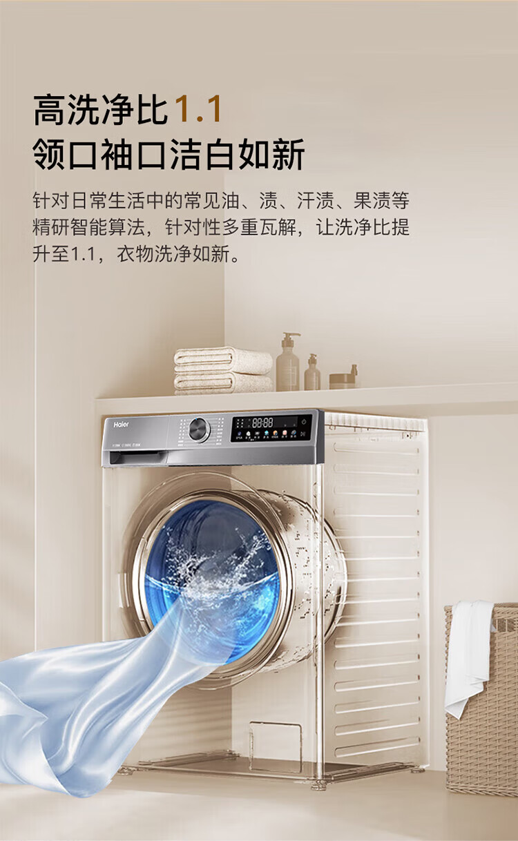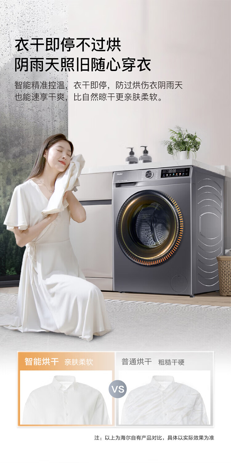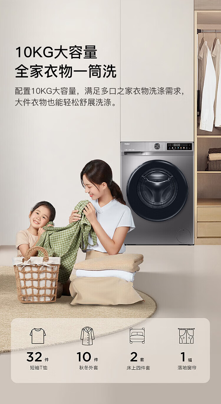Haier drum washing machine fully automatic with drying washing and drying machine household washing machine 10 kg variable frequency first-class energy efficiency sterilization and mite removal national subsidy 20% old for new smart drying | air washing | soft wool washing | AI smart washing | washing and drying in one