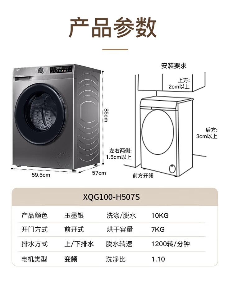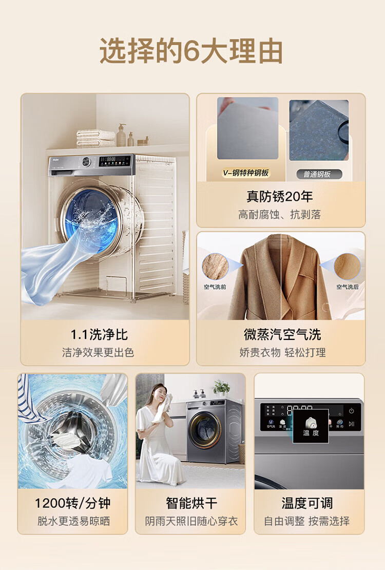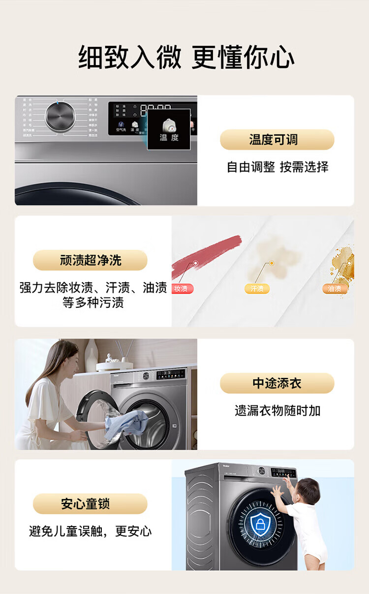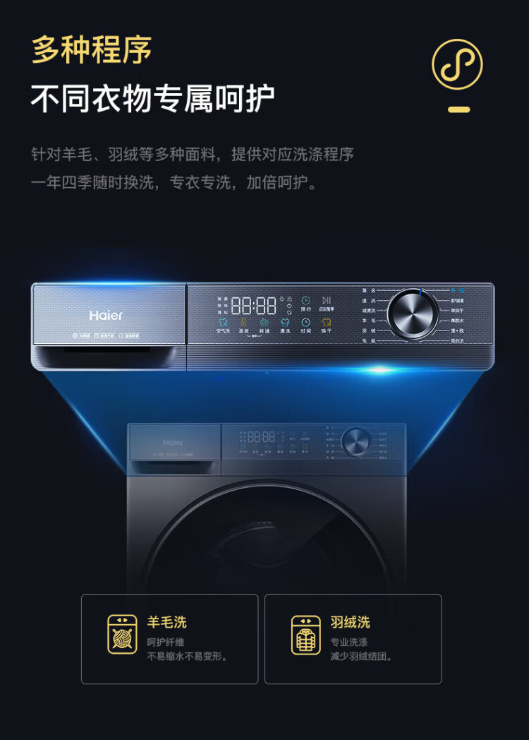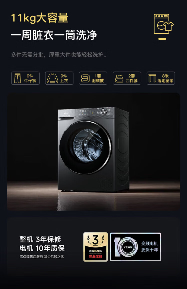 Haier drum washing machine fully automatic with drying washing and drying machine household washing machine 10 kg variable frequency first-class energy efficiency sterilization and mite removal national subsidy 20% old for new smart drying | air washing | soft wool washing | AI smart washing | washing and drying in one