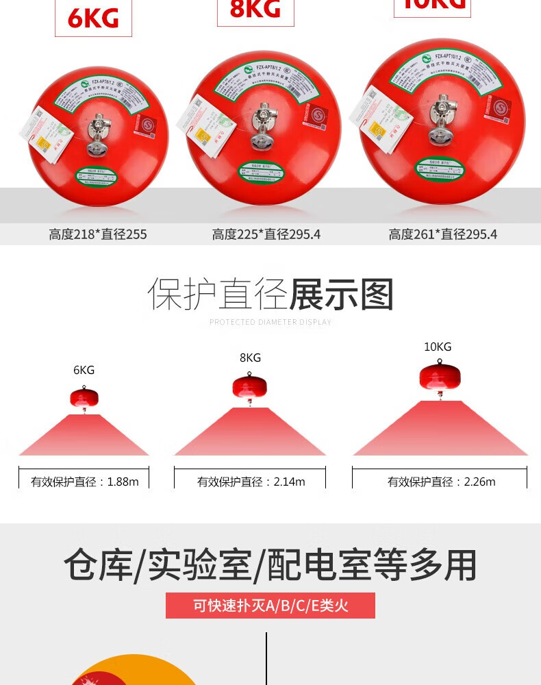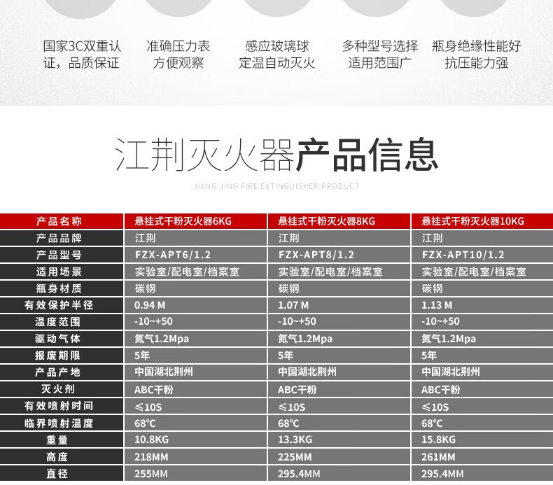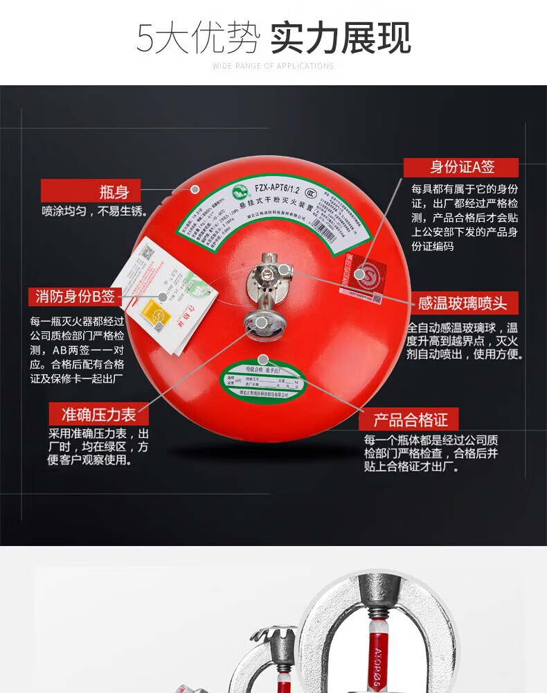 Jiangjing hanging dry powder fire extinguisher 4 6 8 10 kg hanging temperature sensing and constant temperature automatic fire extinguisher device 4kg dry powder FZX-APT4/1.2