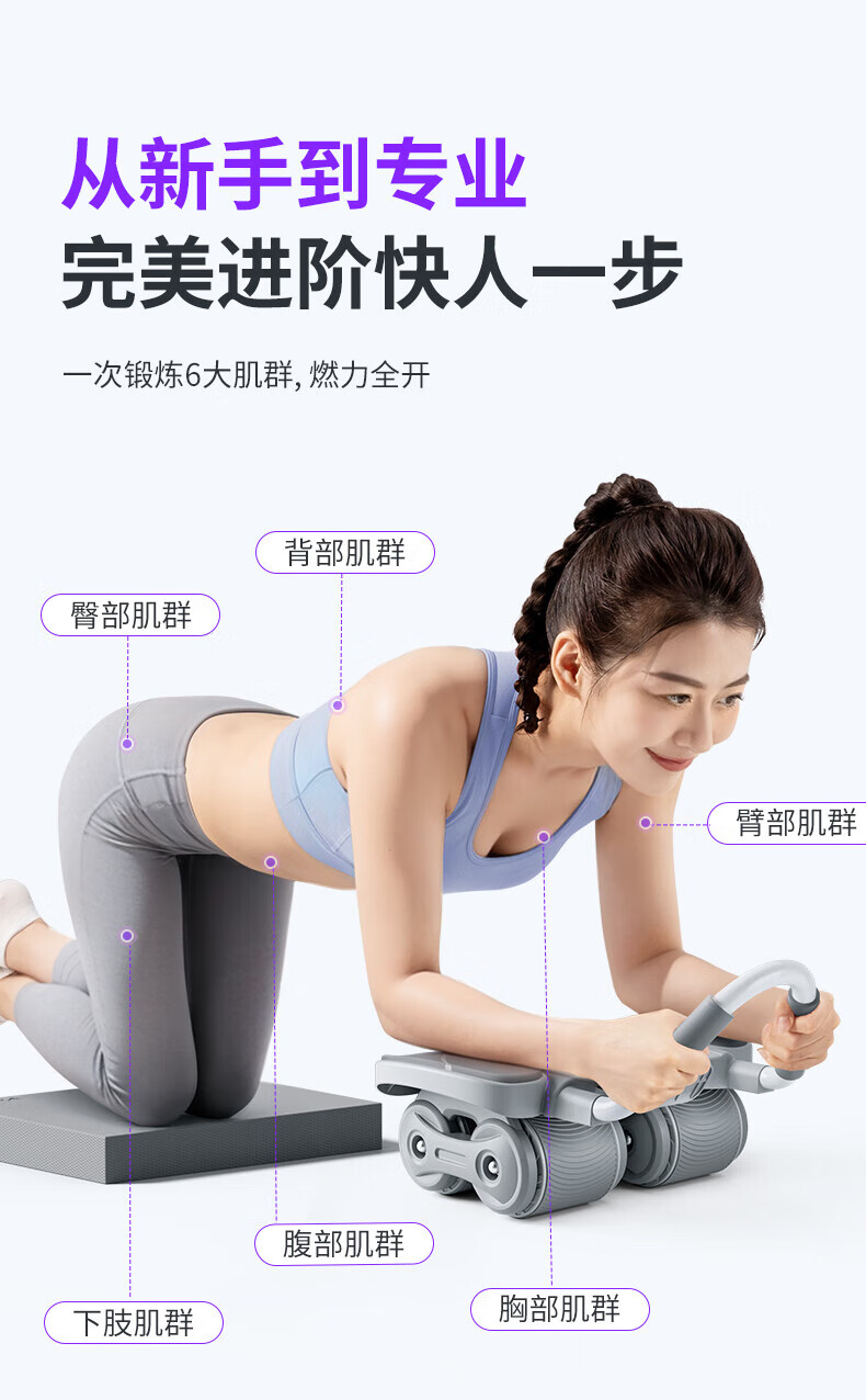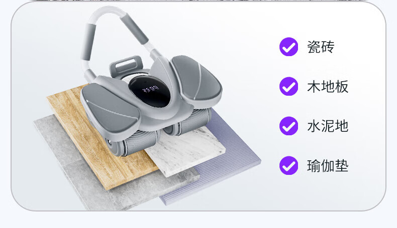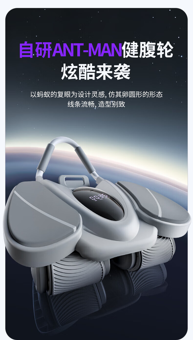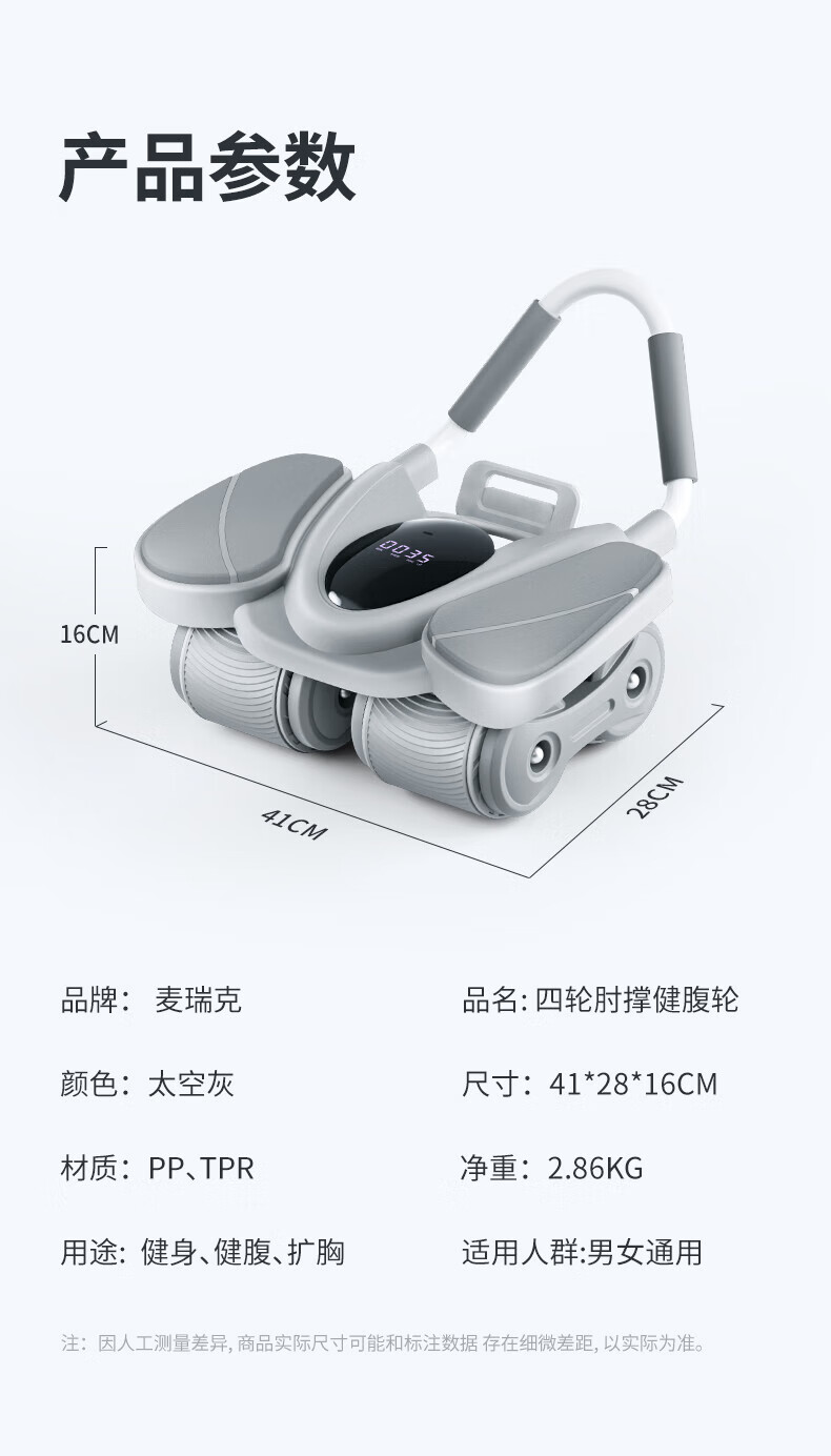 MERACH Intelligent Abdominal Wheel Four-Wheel Automatic Rebound Elbow Support Slim Abdominal Plank Support Home Abdominal Roll Fitness Equipment Intelligent Digital Display Four-Wheel Stable and Strong Load-Bearing - Gray