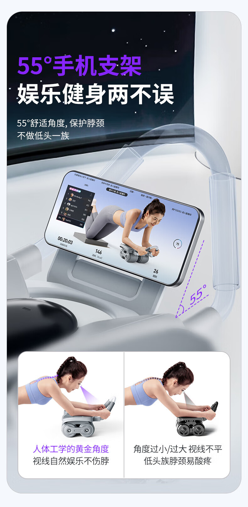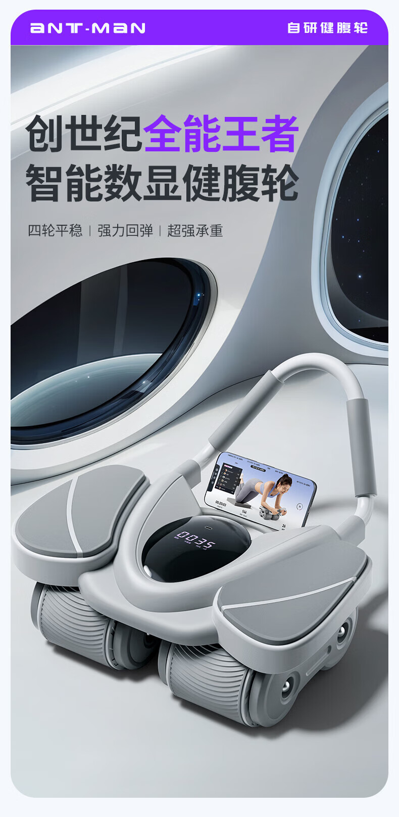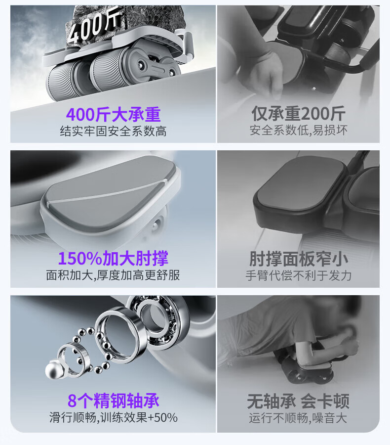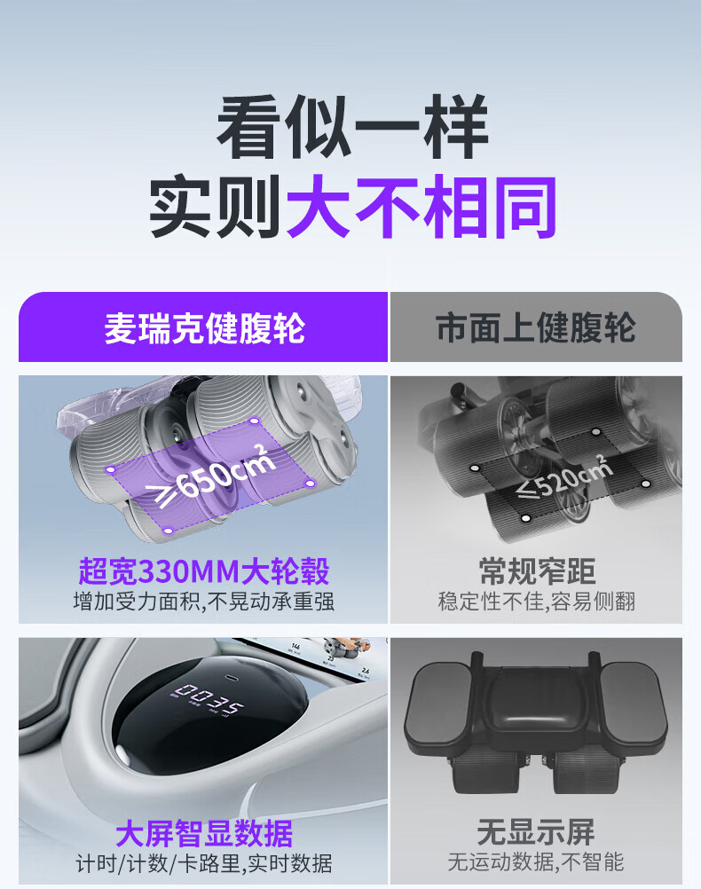 MERACH Intelligent Abdominal Wheel Four-Wheel Automatic Rebound Elbow Support Slim Abdominal Plank Support Home Abdominal Roll Fitness Equipment Intelligent Digital Display Four-Wheel Stable and Strong Load-Bearing - Gray