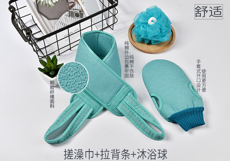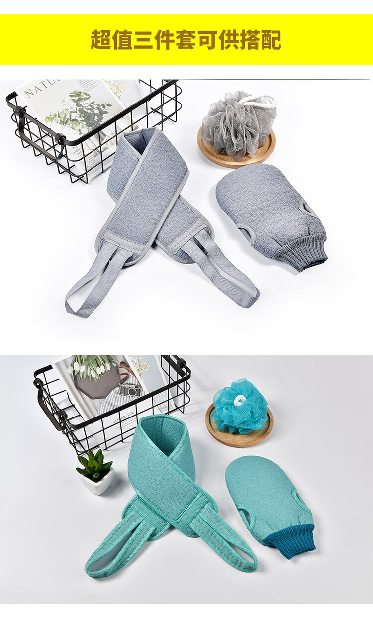 Set of bath towels for men and women, bath rub back strips, bath gloves, mud rub, back rub bath towel, back brush artifact, Nordic blue, one piece set, bath towel
