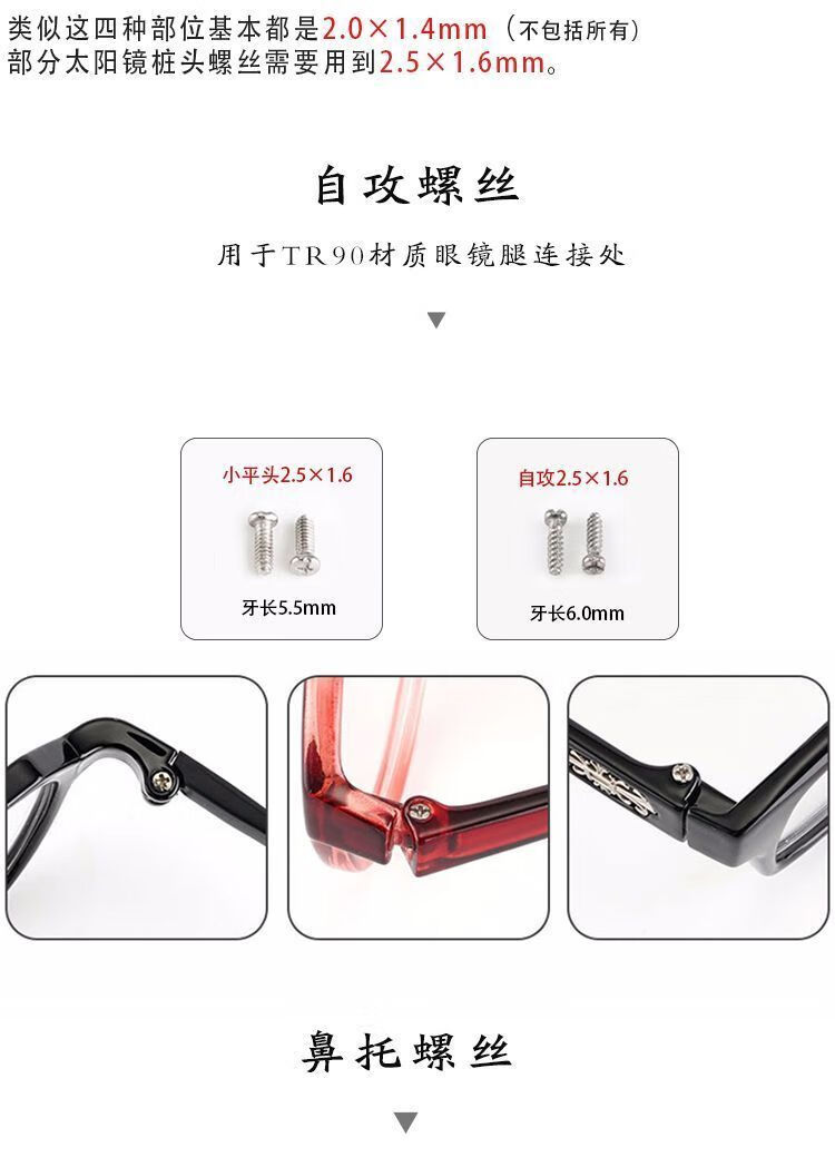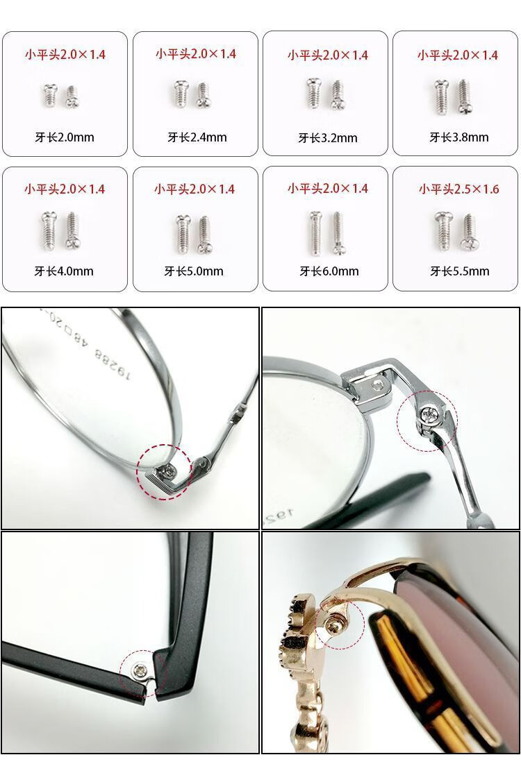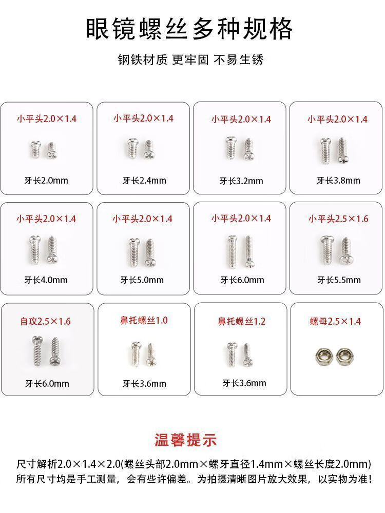 Lu Huichang glasses small screws repair nose pad screws temple screws frame screws set glasses accessories cross screws 12 specifications 72 screws free screwdriver