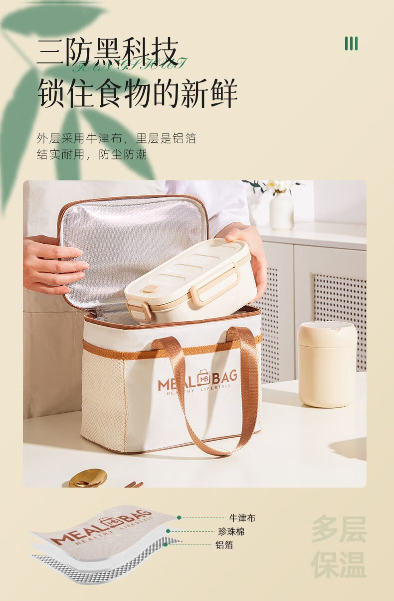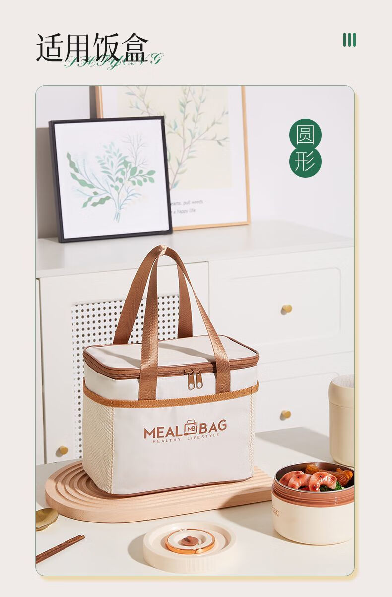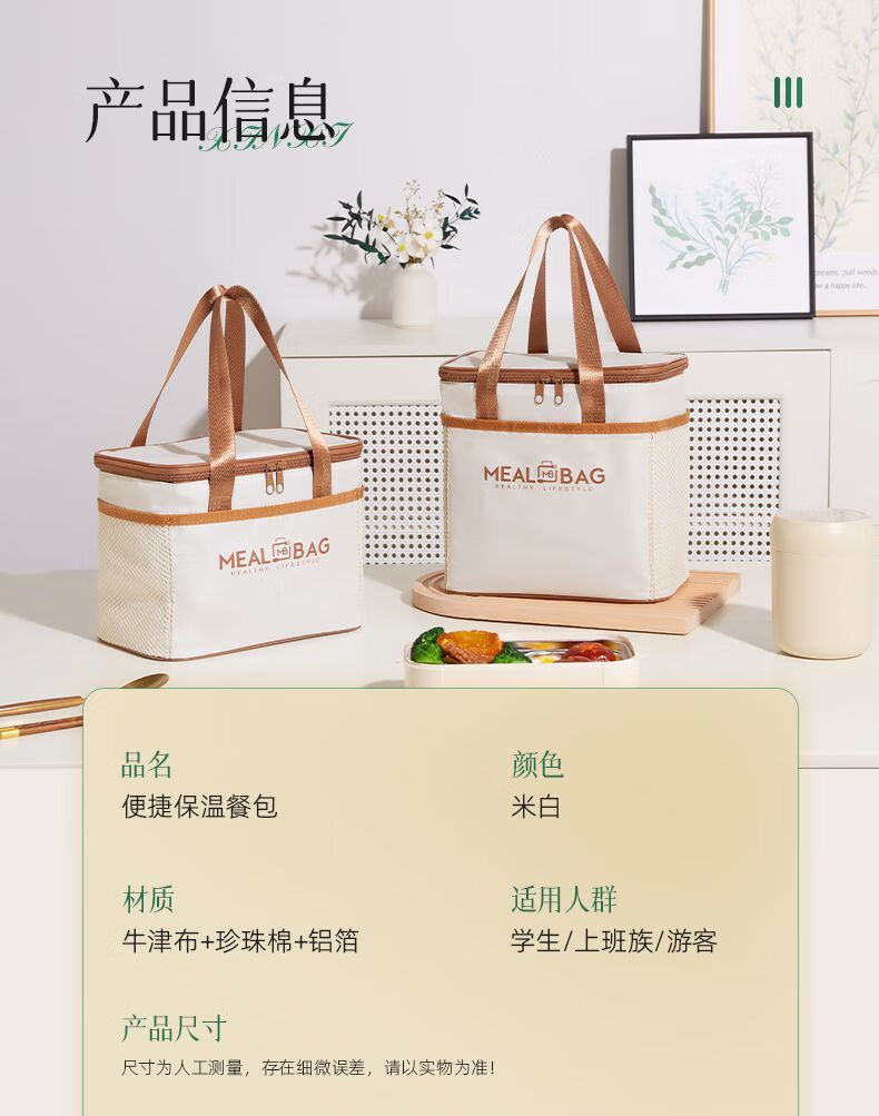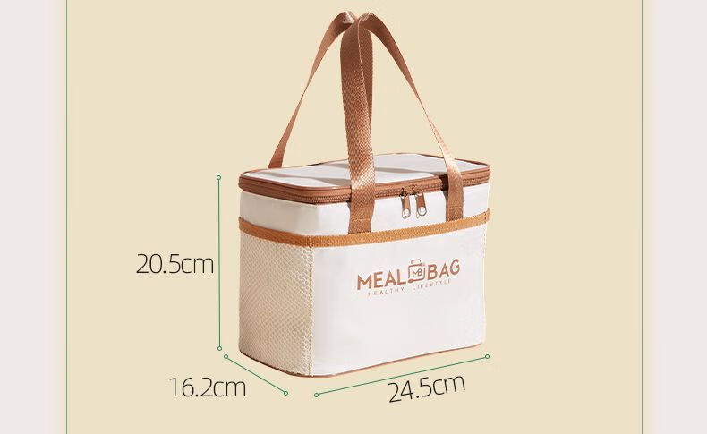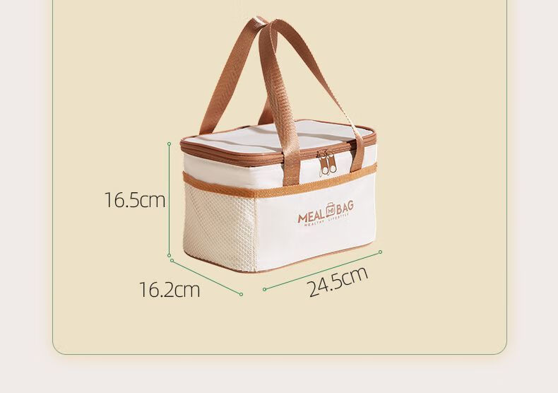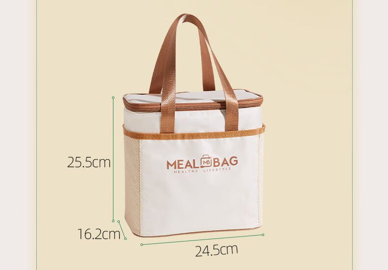 Yuhua Insulated Bag Thick Aluminum Foil Rectangular Large Capacity Lunch Box Bag for Students and Office Workers Carrying Lunch Lunch Bags Waterproof and Easy to Clean Medium Square Beige Insulation