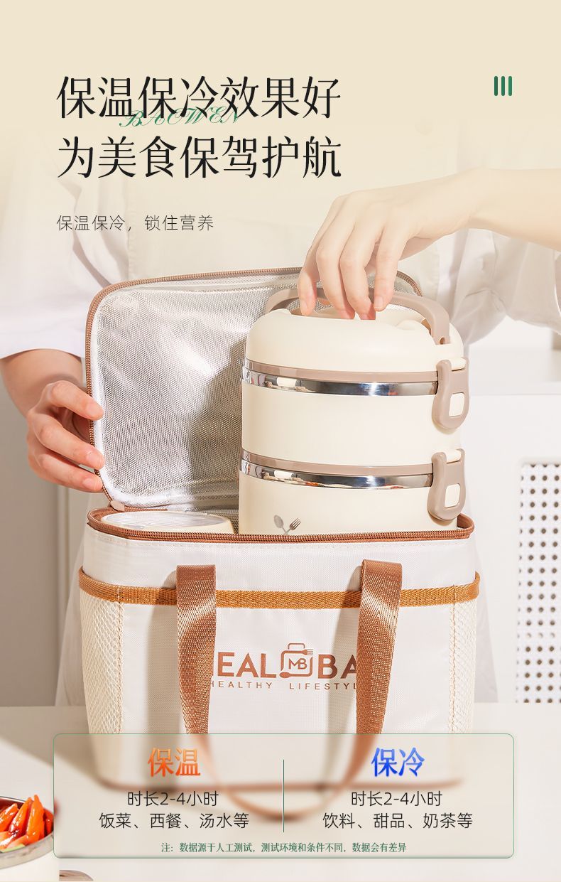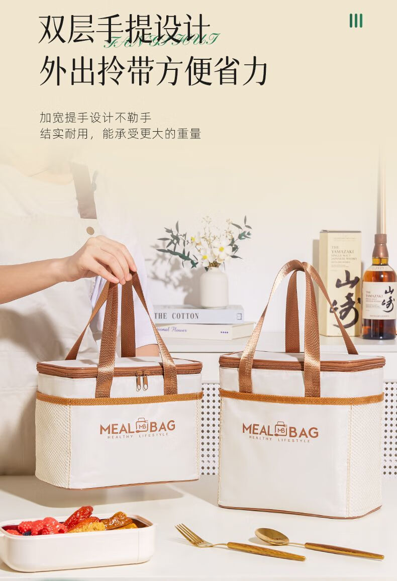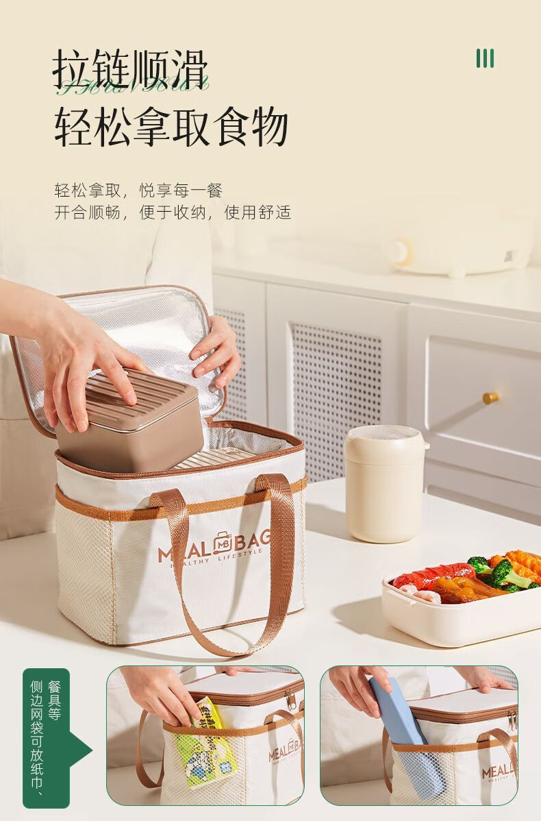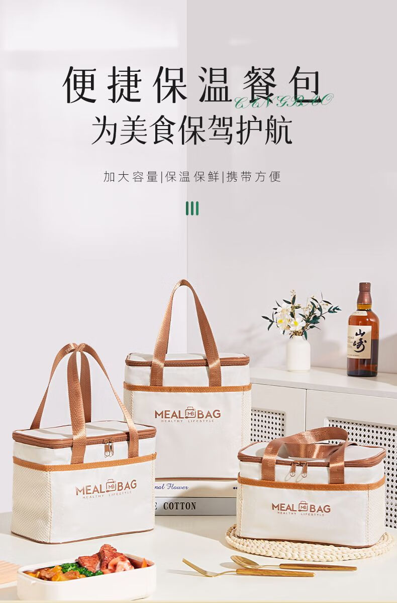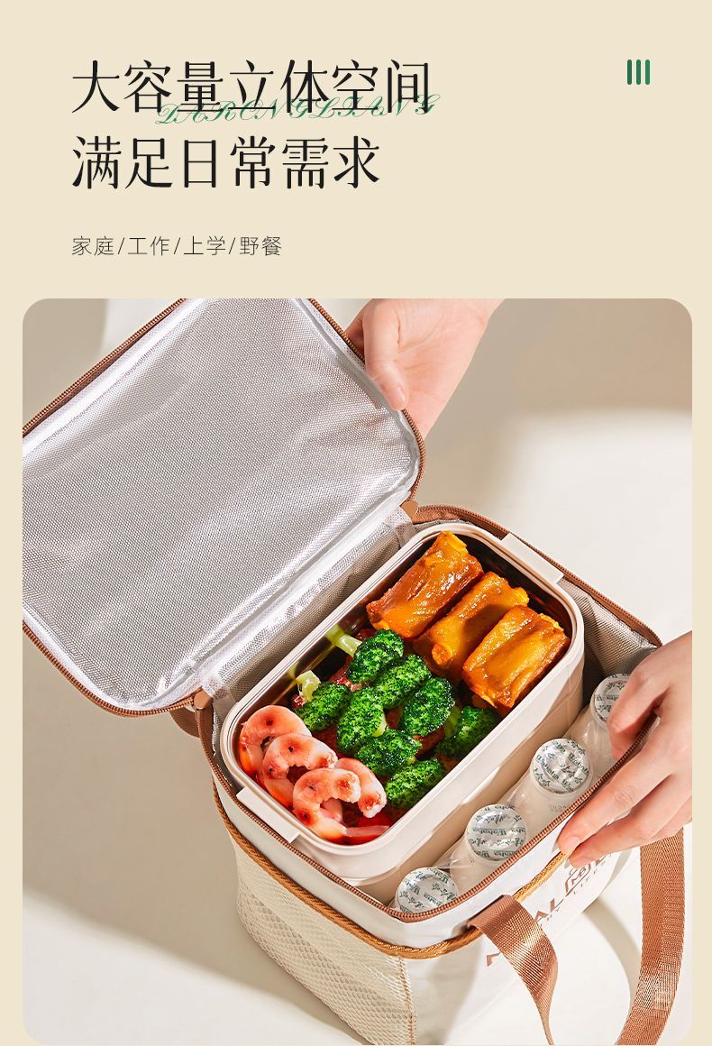 Yuhua Insulated Bag Thick Aluminum Foil Rectangular Large Capacity Lunch Box Bag for Students and Office Workers Carrying Lunch Lunch Bags Waterproof and Easy to Clean Medium Square Beige Insulation