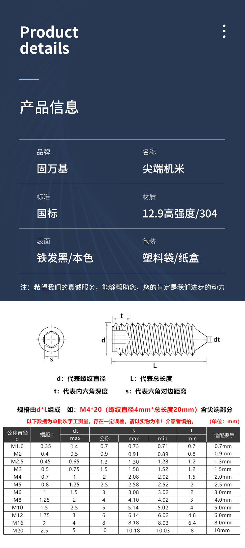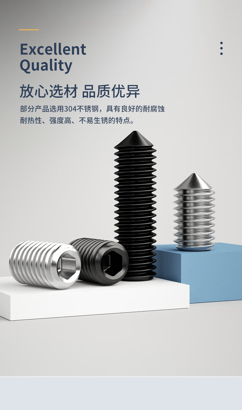 Guwanji 304 stainless steel set screws, hexagonal headless screws, tip machine meters, top screw tips, Kimi Daquan, M10x18 (50 pieces), level 12.9