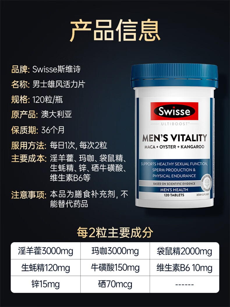 Swisse Xiongfeng Tablets Oyster Essence Replenishes Kidneys, Strengthens Yang, Men's Plus, Promotes Testicle Sexual Function, Zinc Magnesium Tablets, Maca Kangaroo Essence, Double Testosterone Boosting, Maca 60 Tablets + Xiongfeng Tablets 120 Tablets
