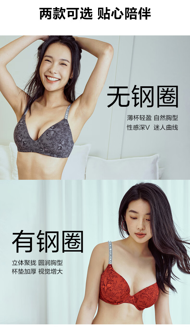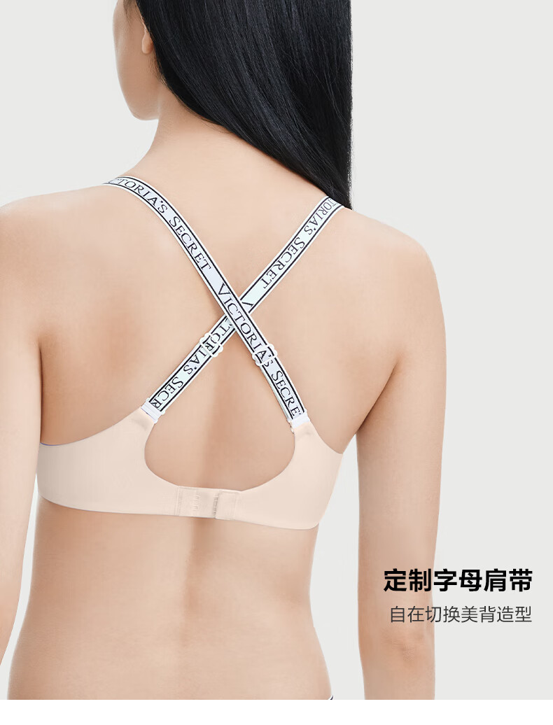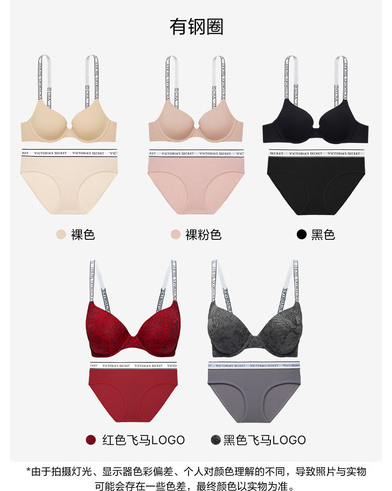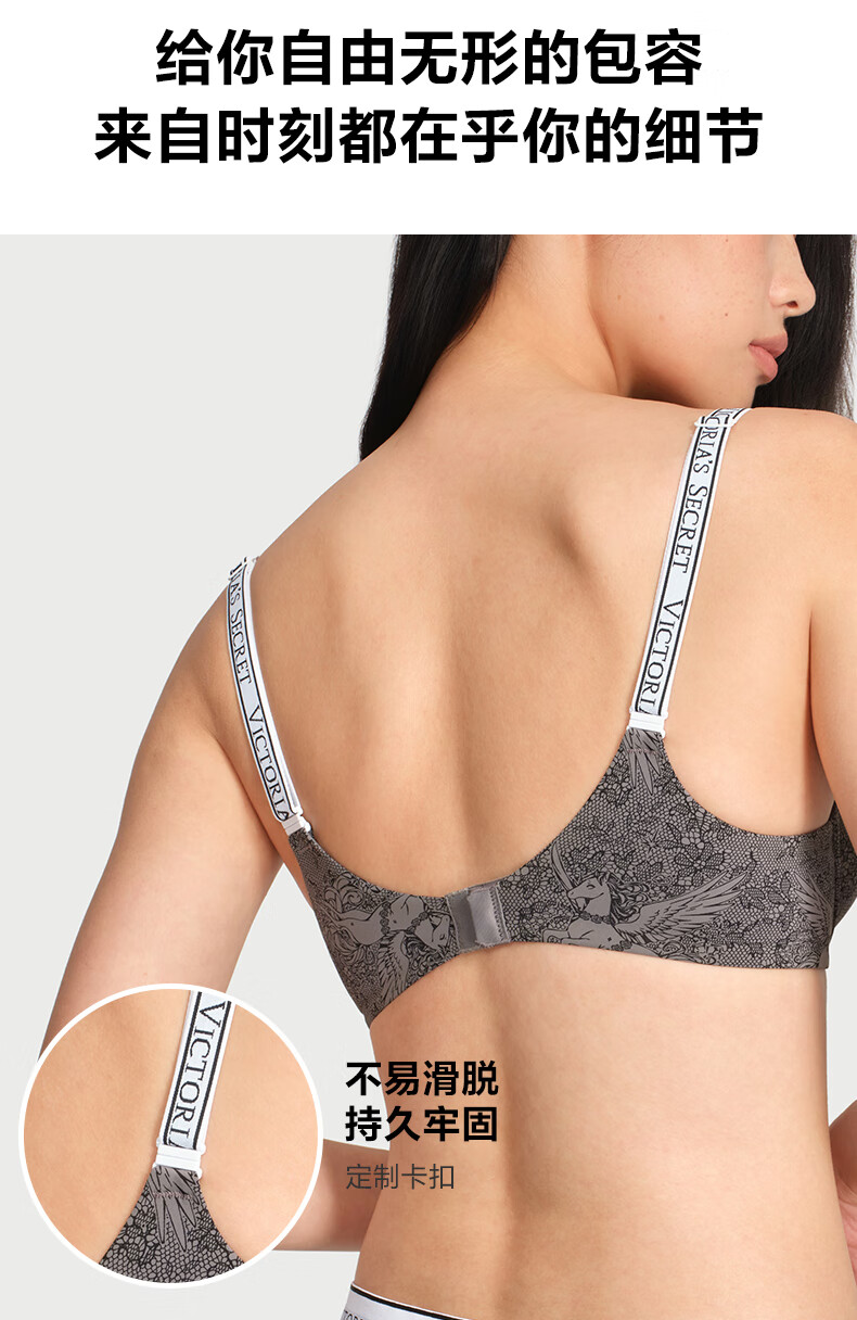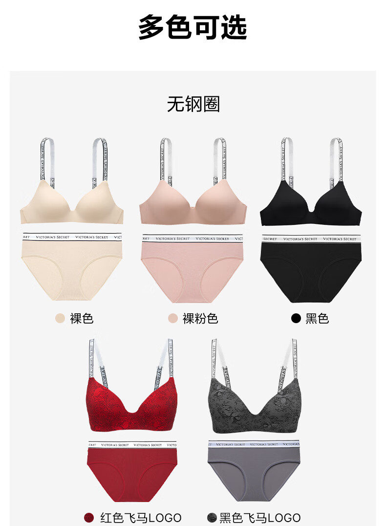 Victoria's Secret logo letter straps, comfortable and seamless fashionable bra and panties underwear set for the Year of the Horse, New Year's gift 54A2 black - no wire rims 80B (36B)+M