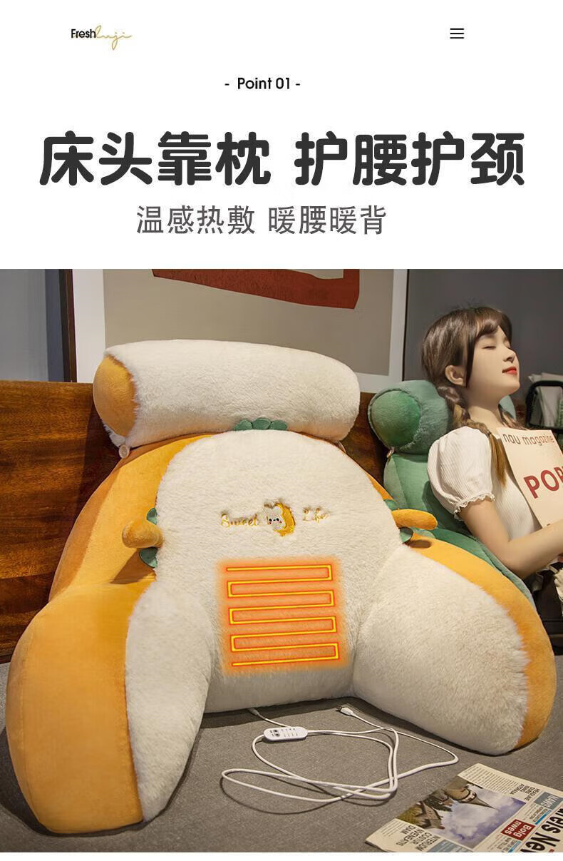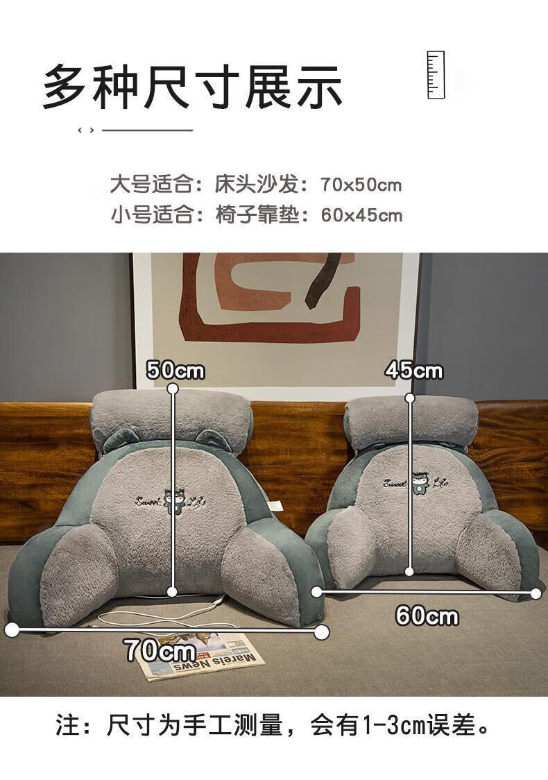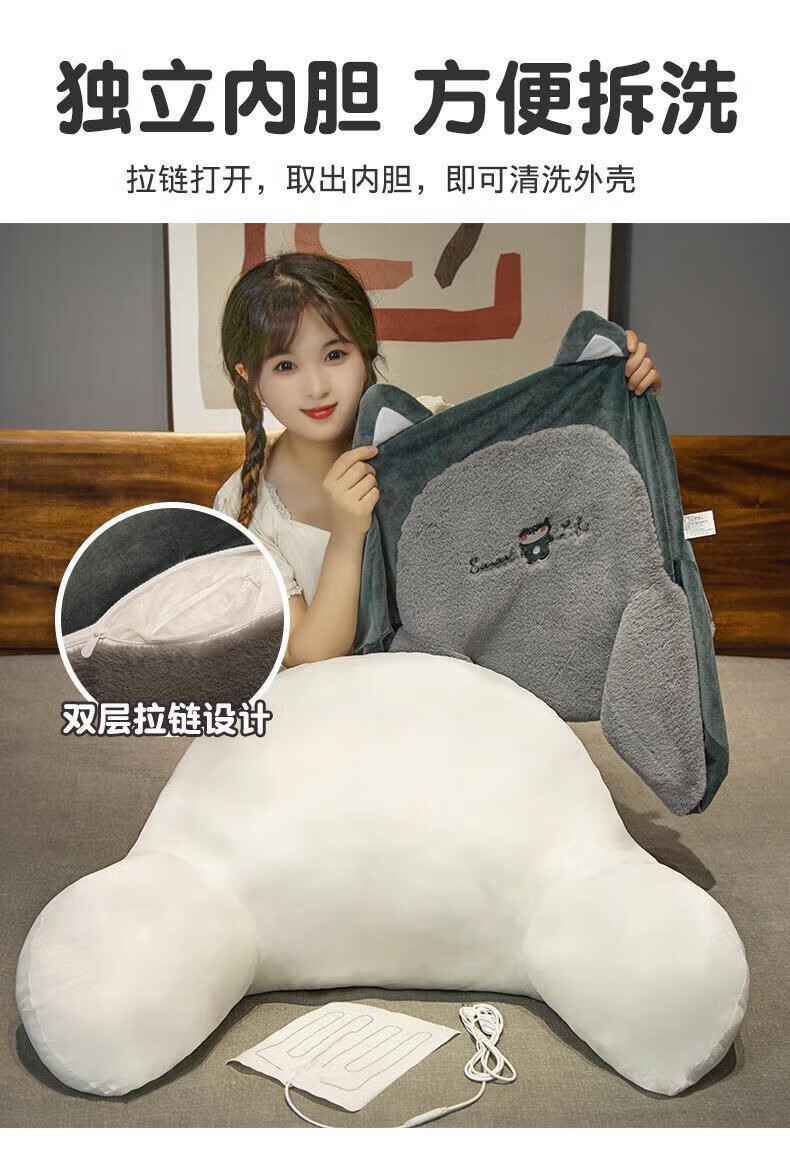 Jingyan Bedside Cushion Large Backrest Bed Soft Cover Sofa Dormitory Sleeping Pillow Waist Support Cushion Pillow Back Cushion Upgraded Heating Husky Hot Compress Waist Warmer Pillowcase Large Ergonomic/Skin Friendly Fabric/Removable and Washable