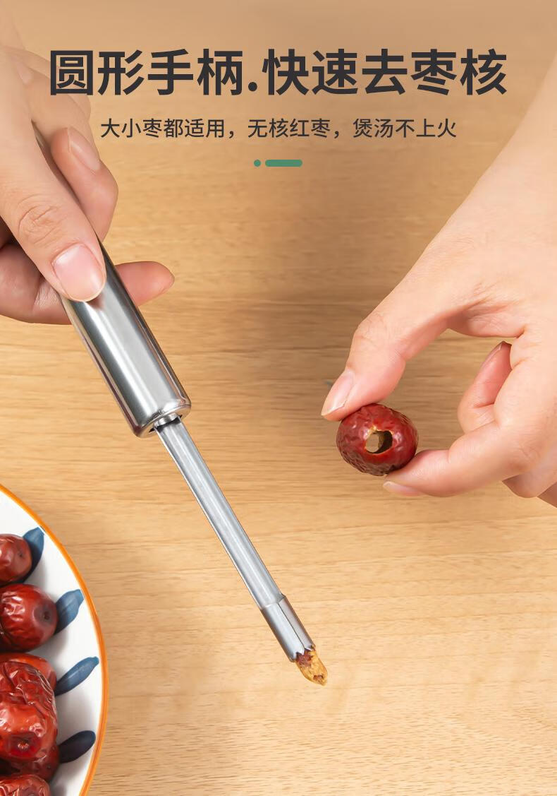 Jujube core removal tool, red date core removal tool, multi-functional stainless steel, hawthorn seed digging, household jujube milk jujube corer, fruit corer - corer 1.0cm, no specifications