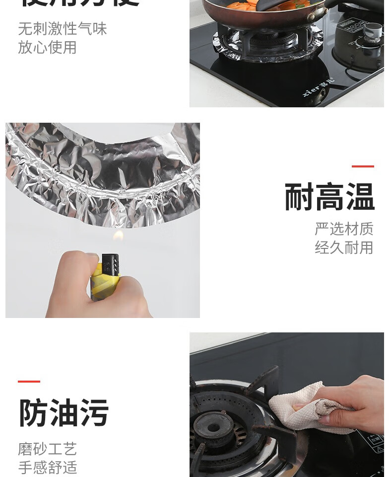Gas stove oil-proof sticker kitchen gas stove round thickened aluminum foil stove cleaning protective pad stove tin foil round thickened and enlarged 50 pieces no specifications