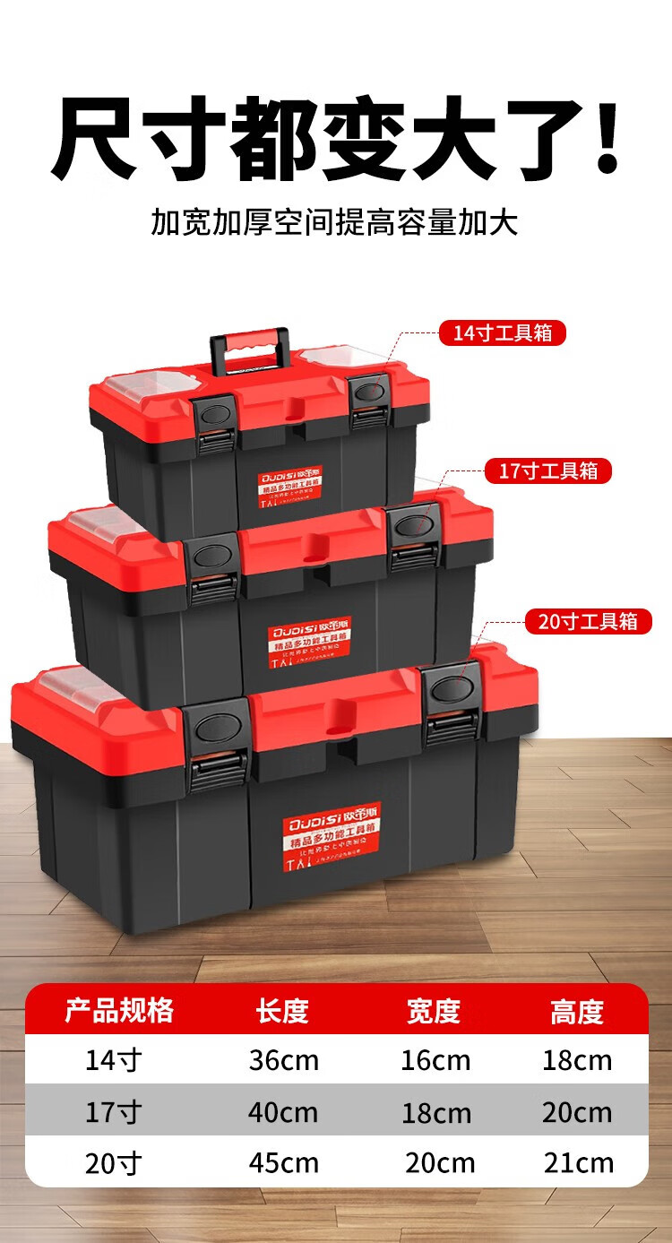 Hardware tool box storage box vehicle-mounted thickened portable multi-functional repair large space tool Bumblebee thickened 20-inch tool box hot product for resumption of work
