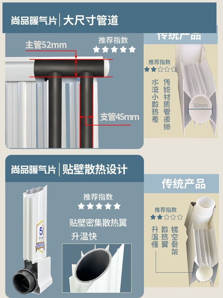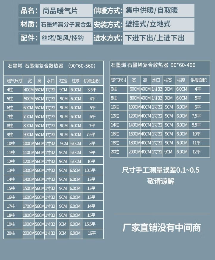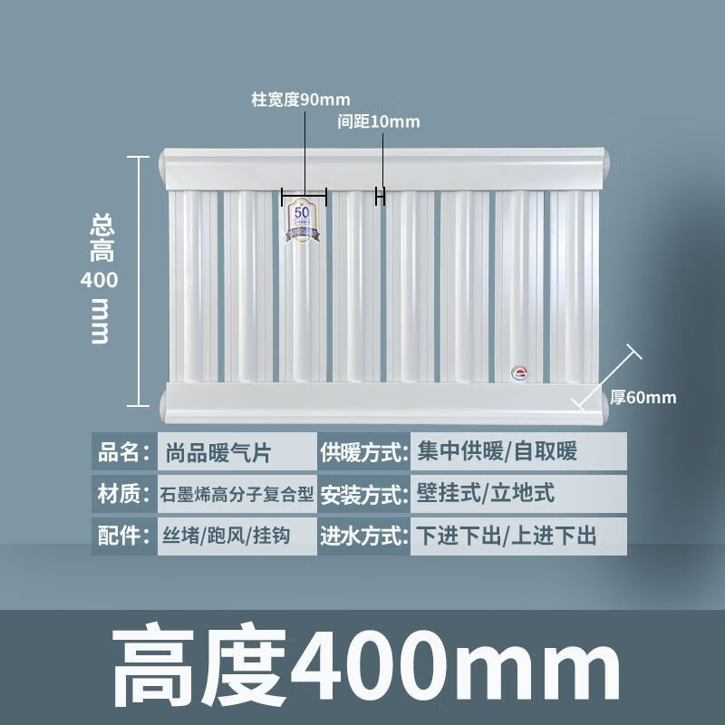 Vinoa Shangpin's new graphene large water channel radiator household central heating water heating radiator back basket thickened center distance 340 full height 400 height 400mm*340mm 8-column length 81mm