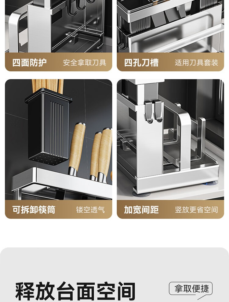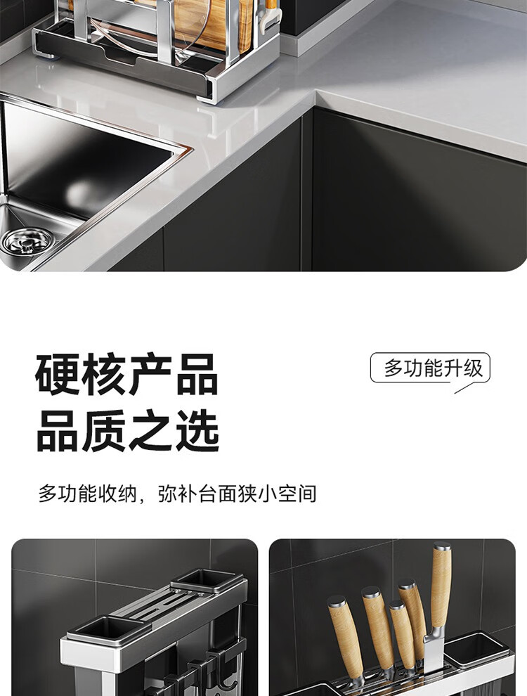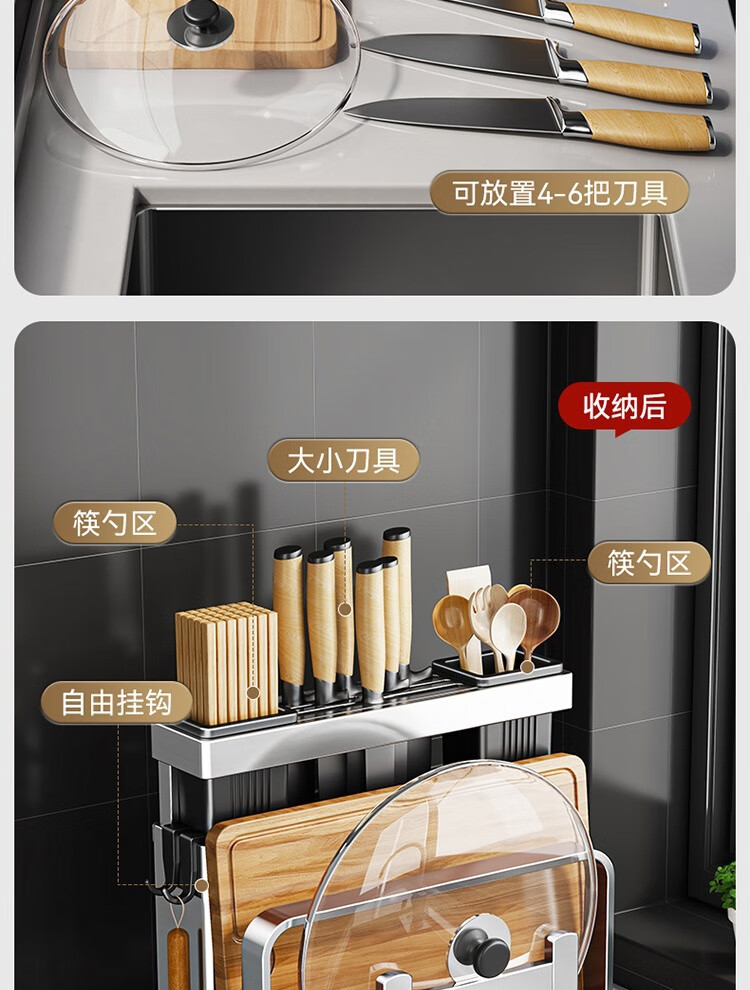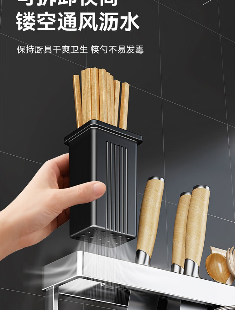 304 stainless steel kitchen knife rack, chopping board rack, integrated chopstick and knife storage rack, kitchen knife rack, extra thick chopstick barrel, countertop chopping board rack, pot lid rack hook*4, no specifications