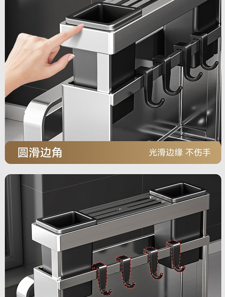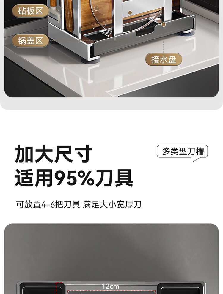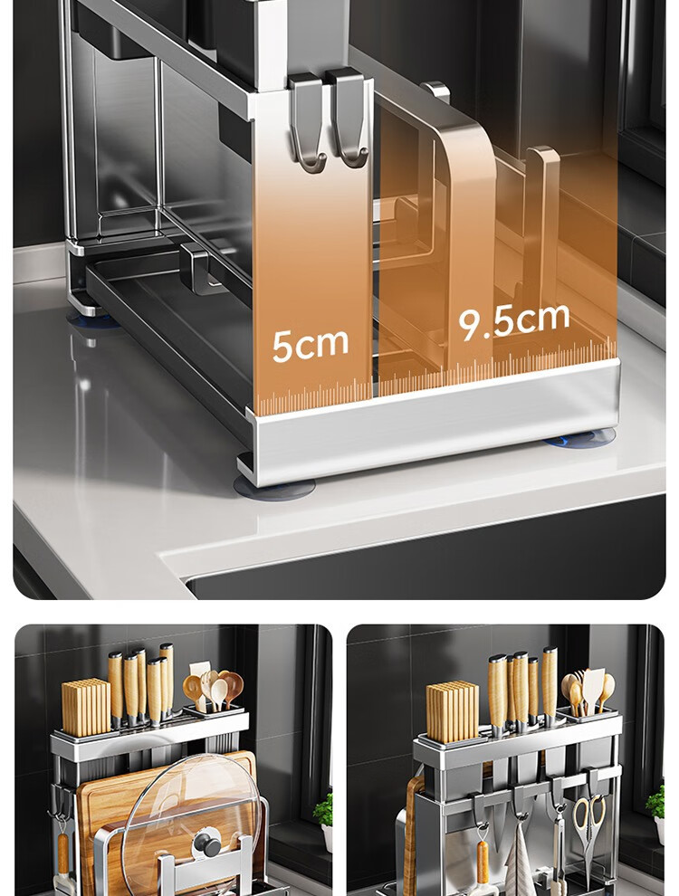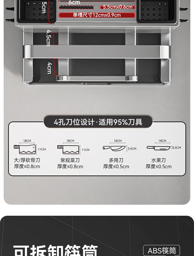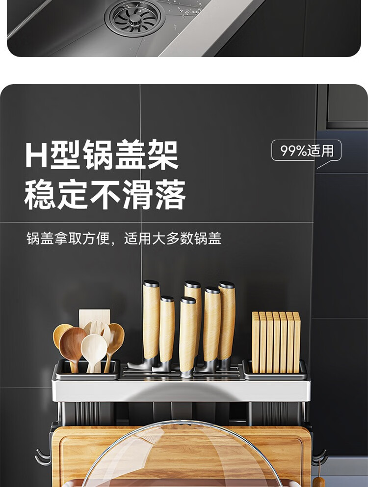 304 stainless steel kitchen knife rack, chopping board rack, integrated chopstick and knife storage rack, kitchen knife rack, extra thick chopstick barrel, countertop chopping board rack, pot lid rack hook*4, no specifications