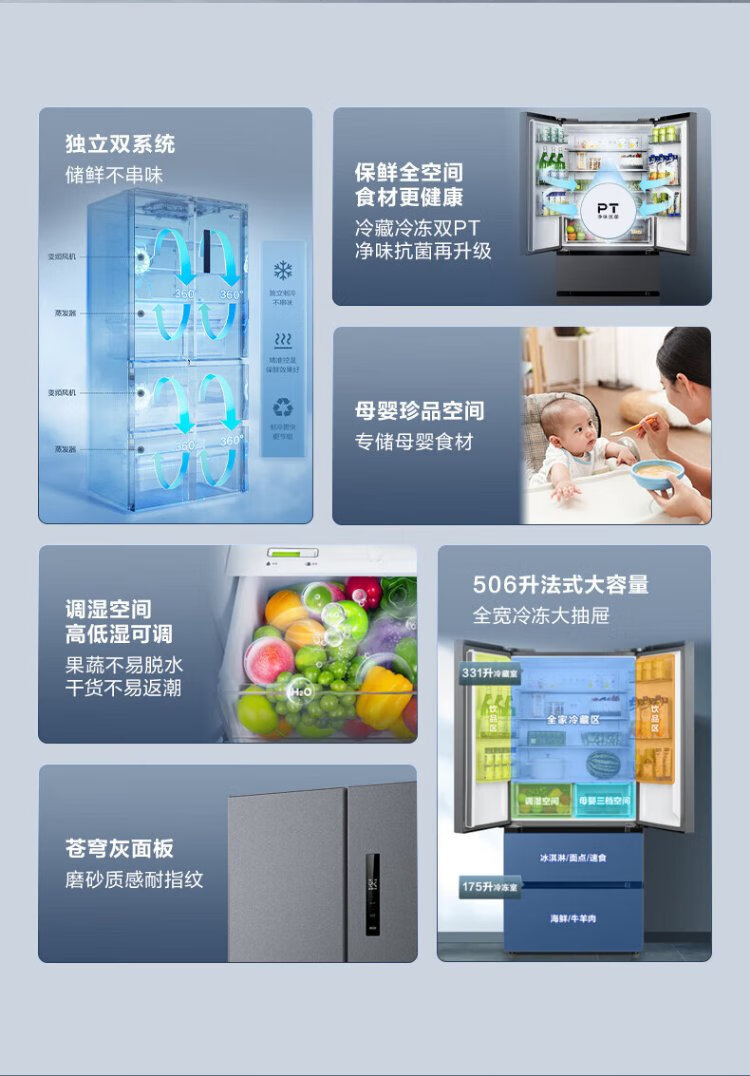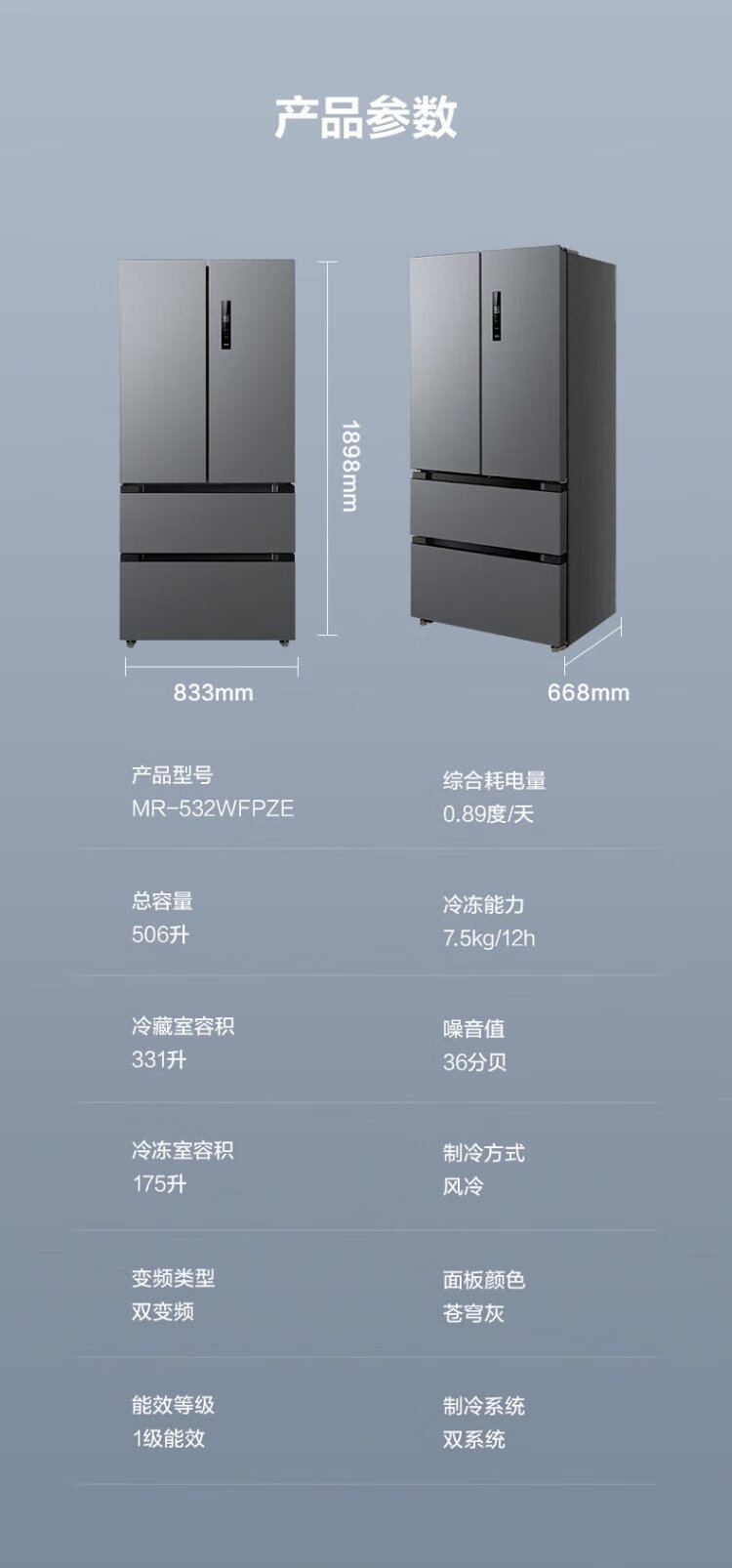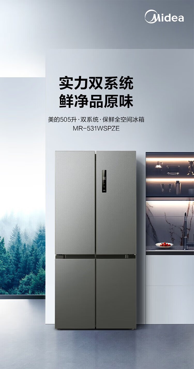 Midea 531/532 cross-door French four-door household refrigerator dual-system odor-free first-level variable frequency air-cooled frost-free large capacity PT odor-free home appliances Renewal subsidy 15% MR-531WSPZE