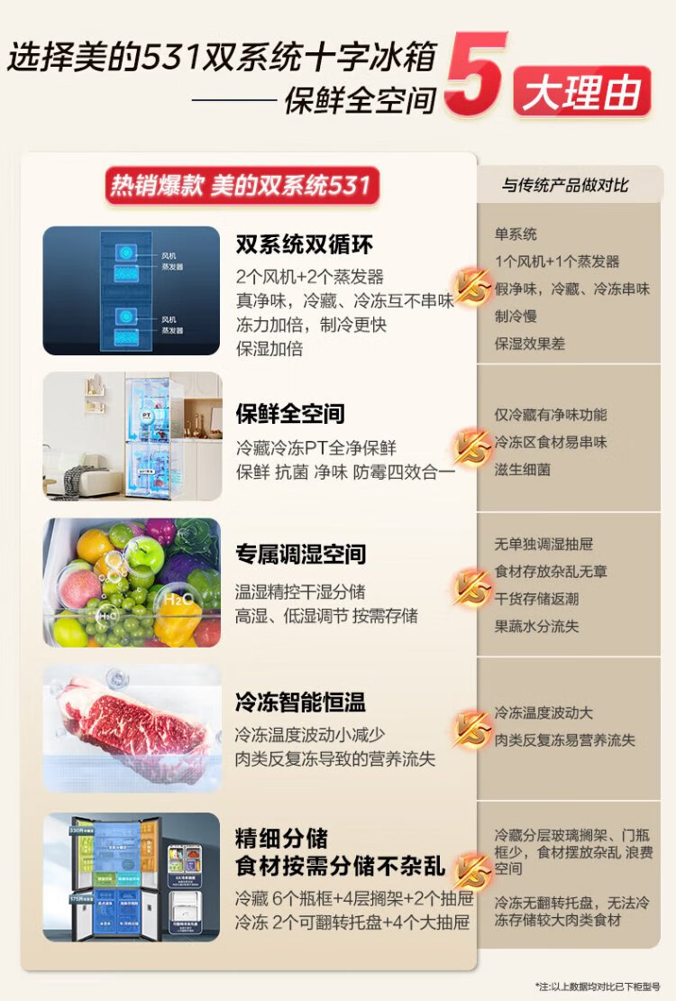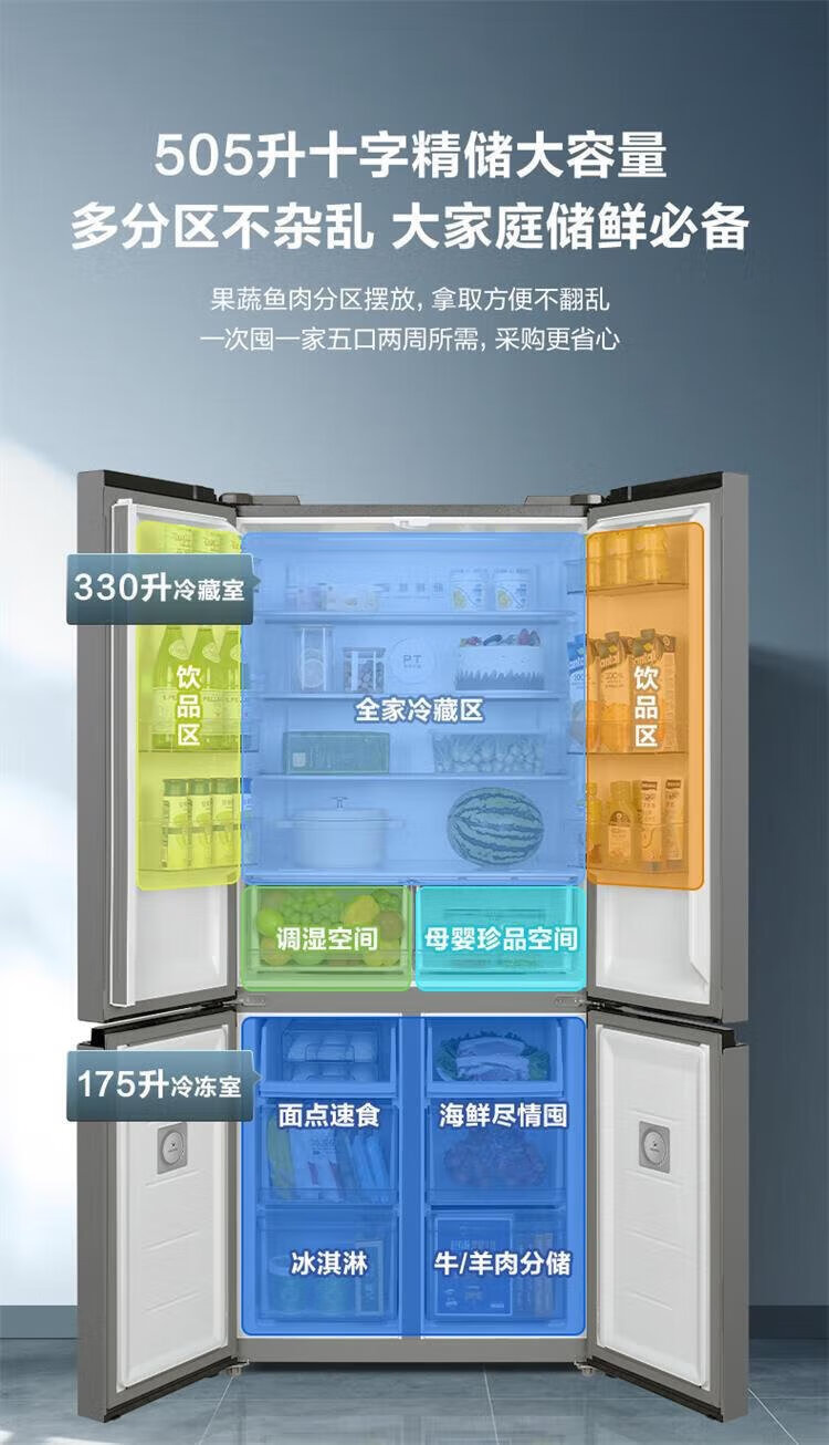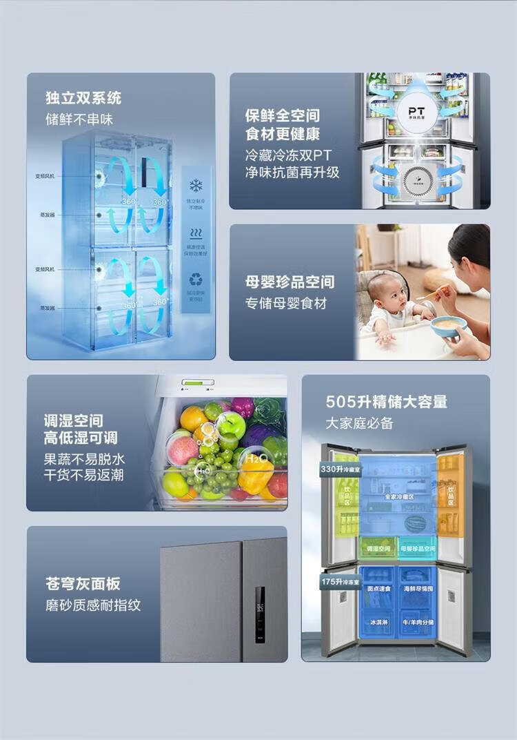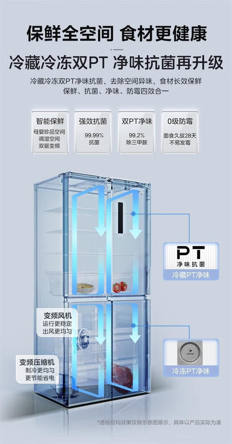Midea 531/532 cross-door French four-door household refrigerator dual-system odor-free first-level variable frequency air-cooled frost-free large capacity PT odor-free home appliances Renewal subsidy 15% MR-531WSPZE