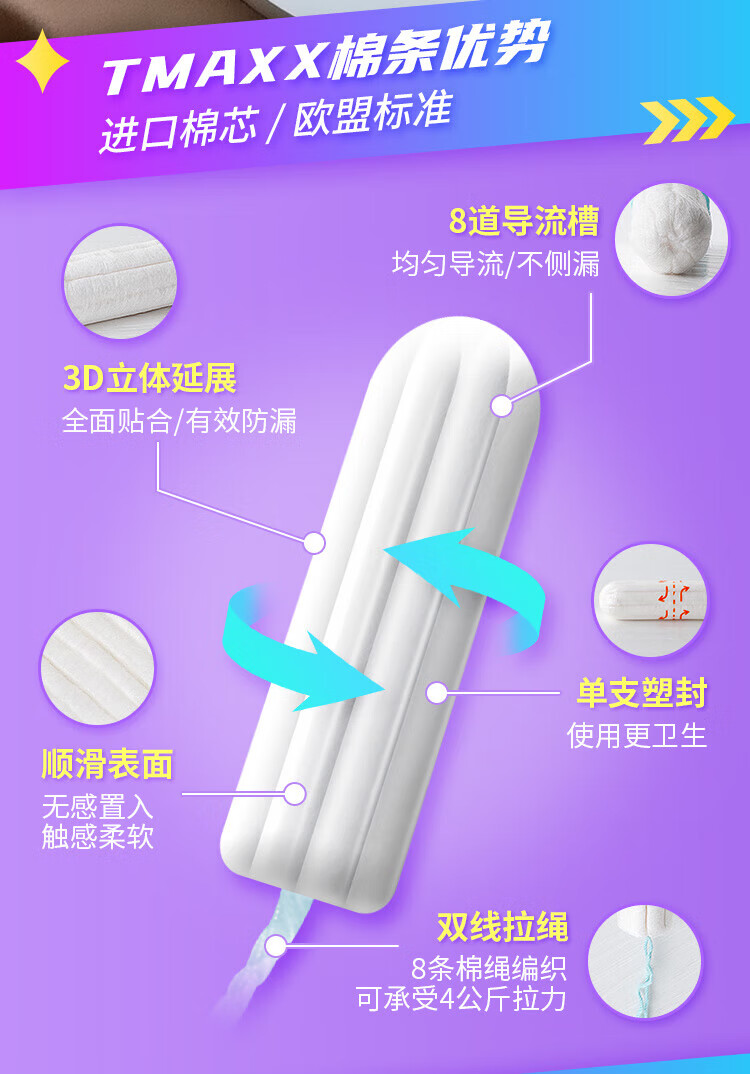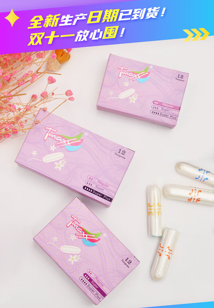 Tmaxx tampons, finger-type tampons, plug-in cotton swabs, menstrual sanitary napkins, special built-in plugs for swimming, large quantity of 12 pieces